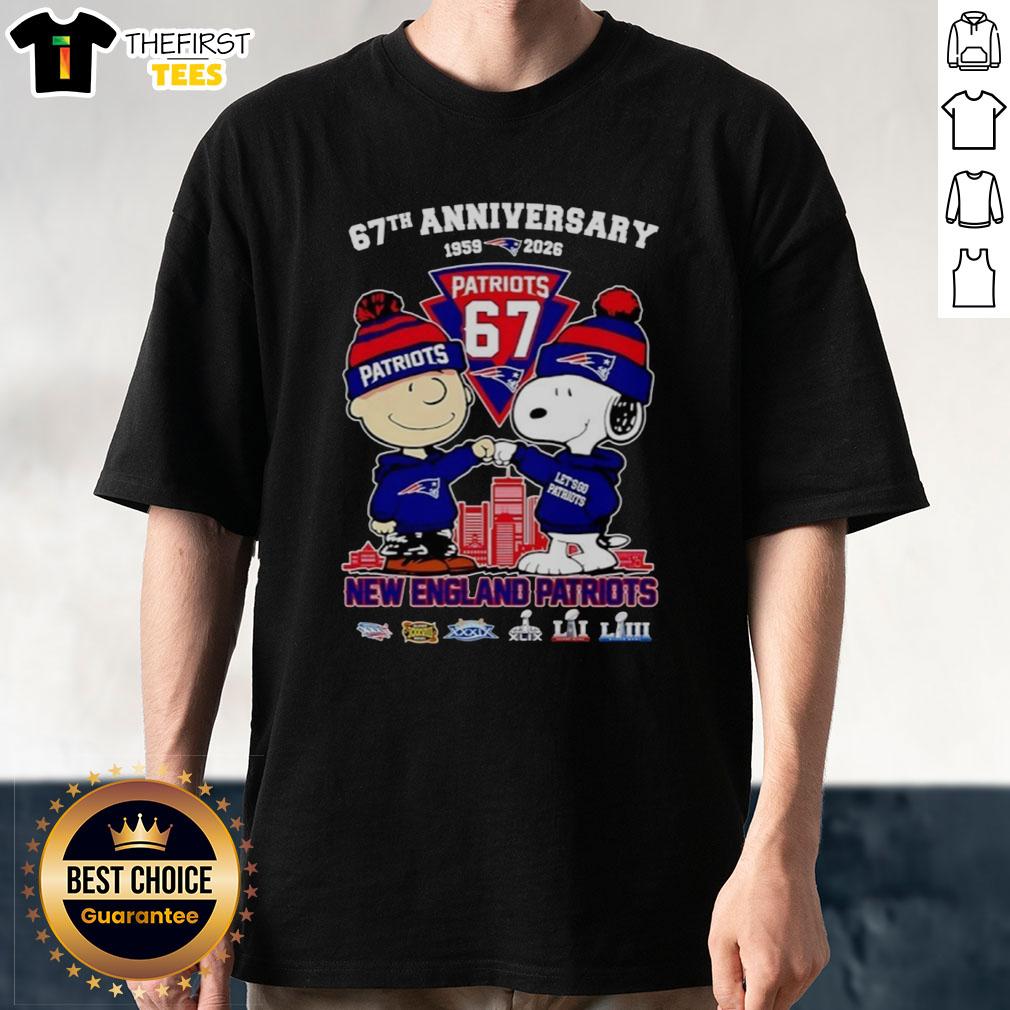 Awesome Snoopy And Charlie Brown New England Patriots Football 1959-2026 67 Years Of History T-Shirt