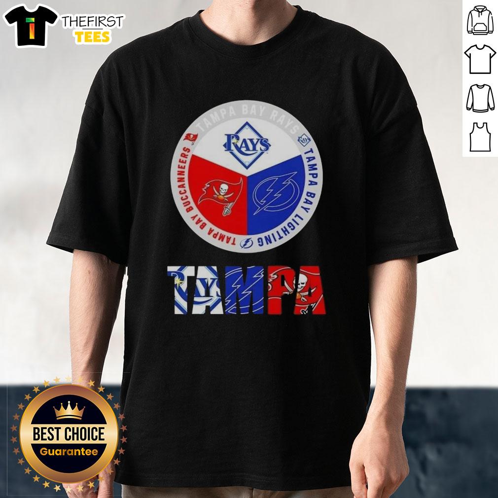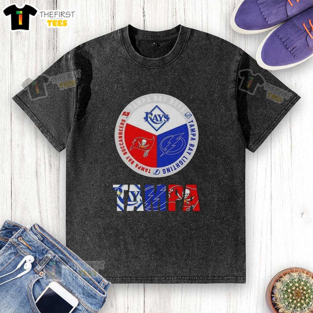 Awesome Tampa Bay City Sports Rays Lightning Buccaneers Logos T-Shirt