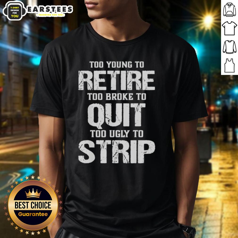 Awesome Too Young To Retire Too Broke To Quit Too Ugly To Strip T-Shirt