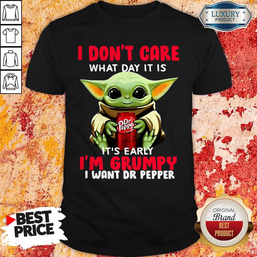 Baby Yoda I Don’t Care What Day It Is It’s Early I’m Grumpy I Want Dr Pepper Shirt