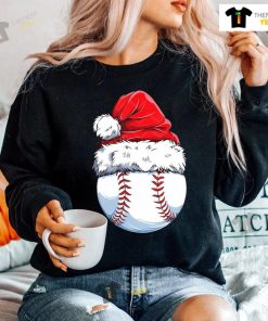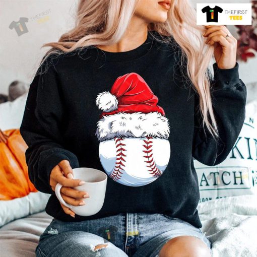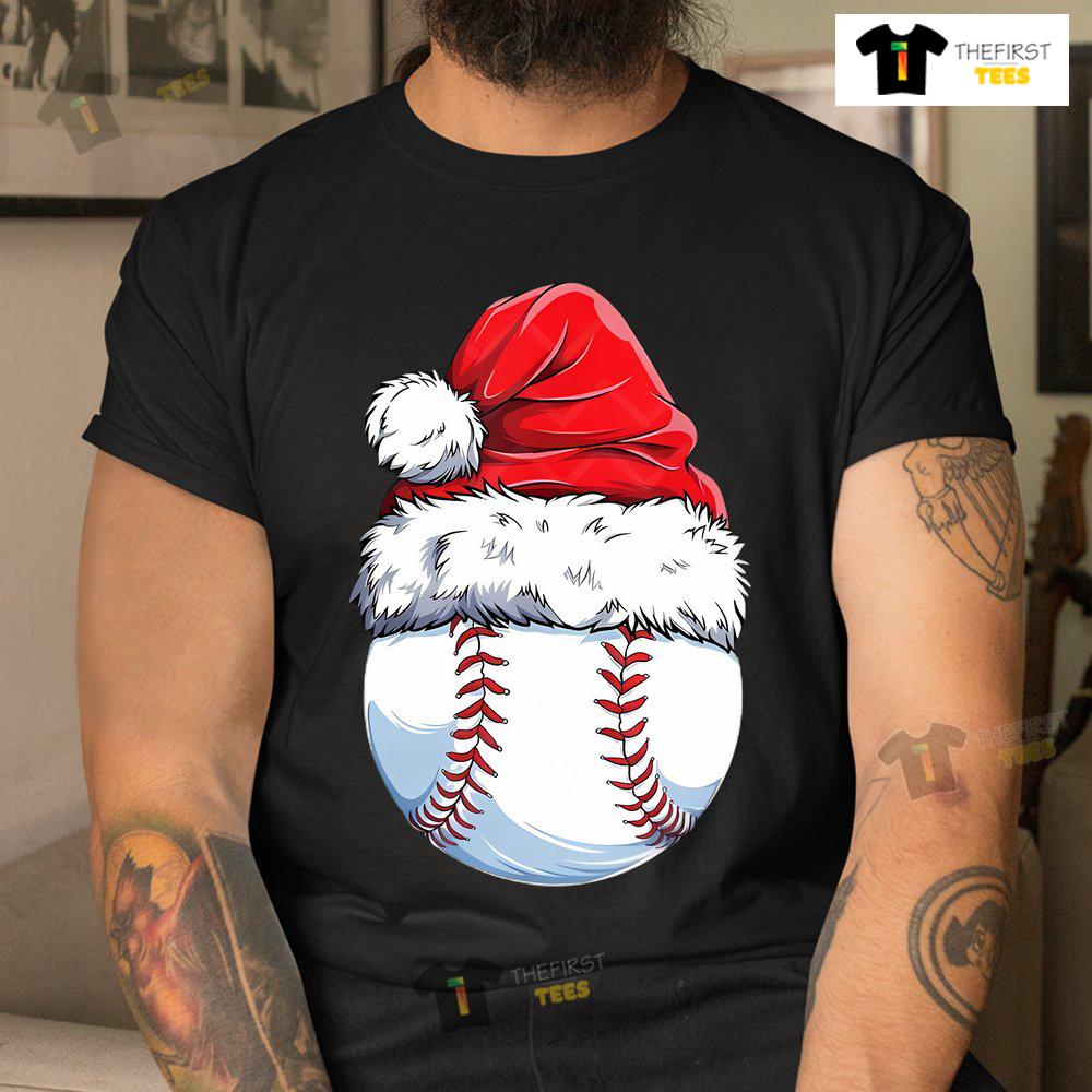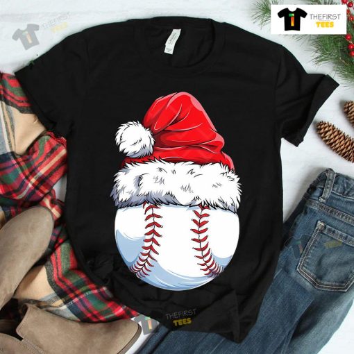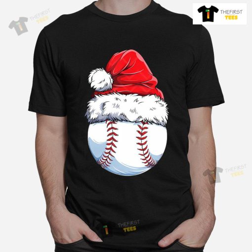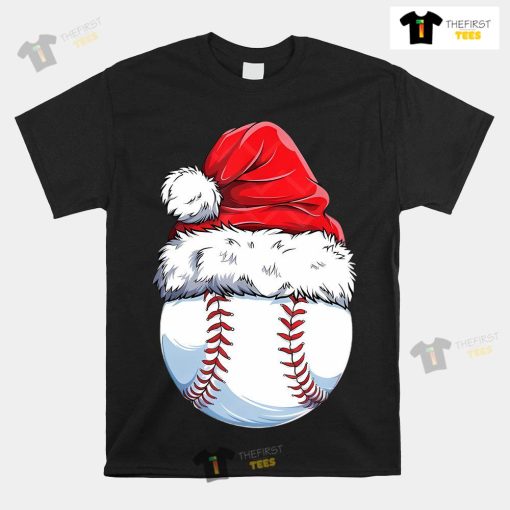Baseball Ball Santa Hat Christmas T-shirt