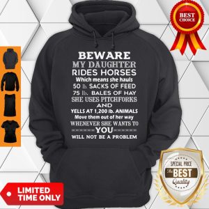 Beware My Daughter Rides Horses 50 Lb Sacks Of Feed 75 Lb Bales Of She Uses Pitchforks And Whenever She Wants To You Will Not Be Problem Shirt