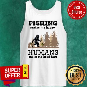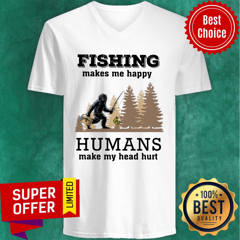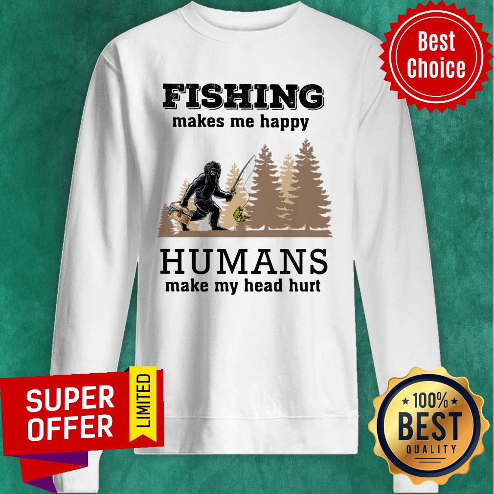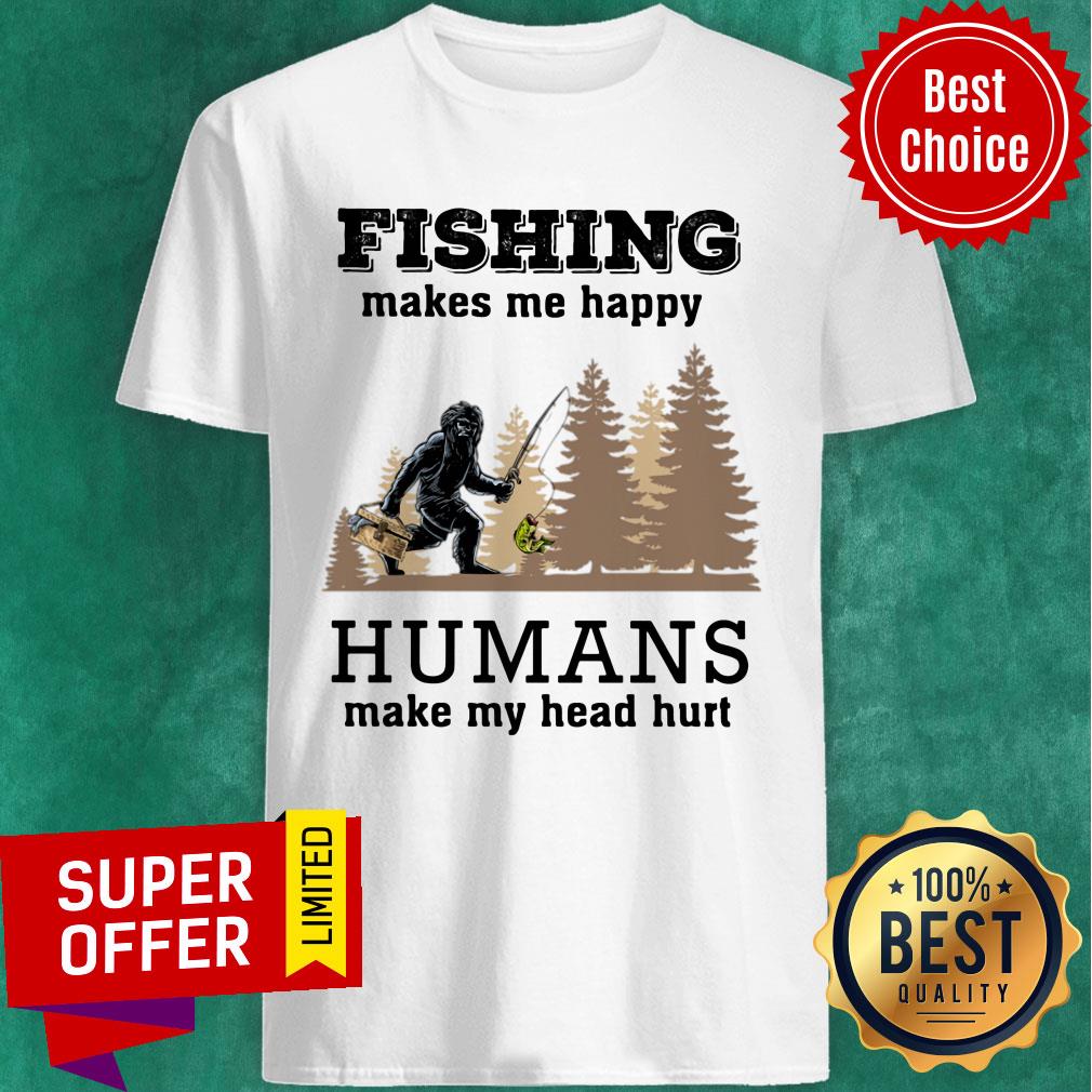 Bigfoot Fishing Make Me Happy Humans Make Me Head Hurt Shirt