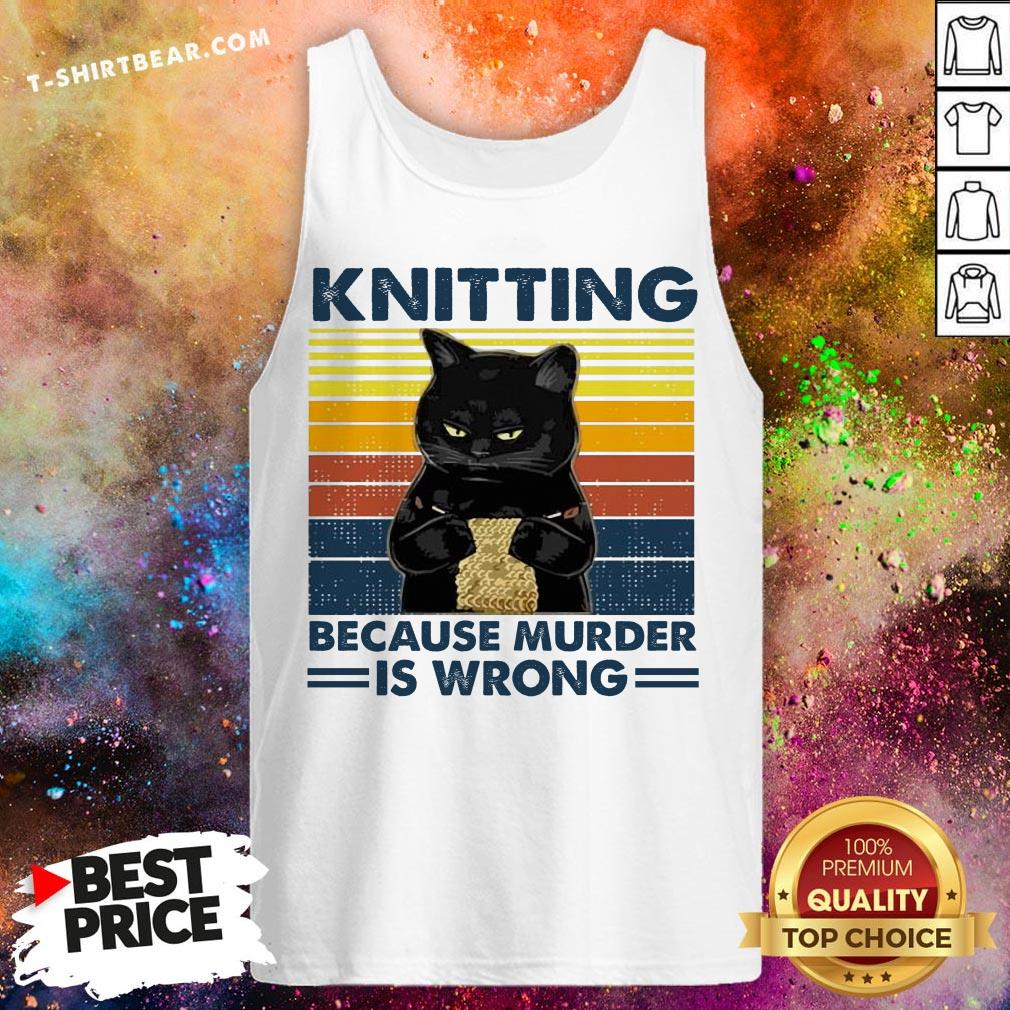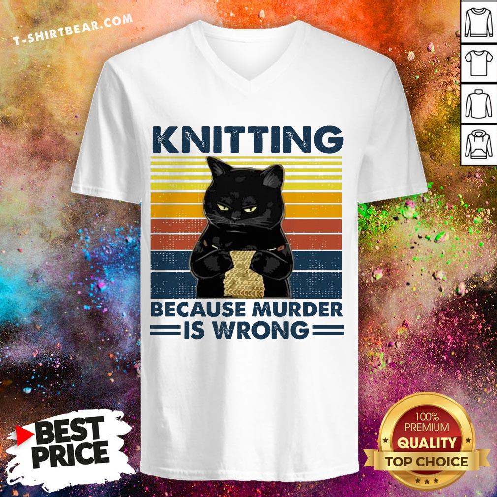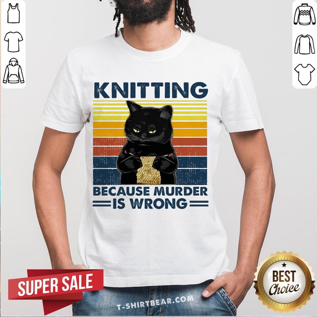Black Cat Knitting Because Murder Is Wrong Vintage Shirt