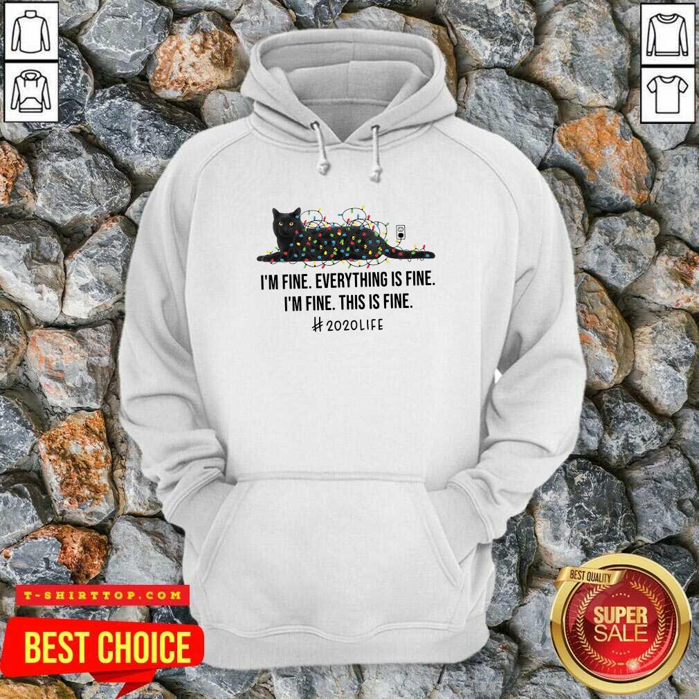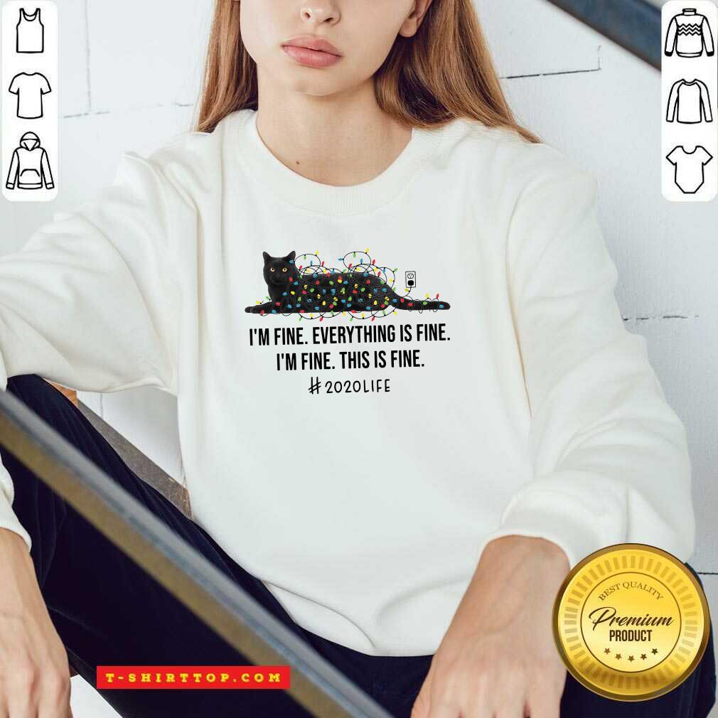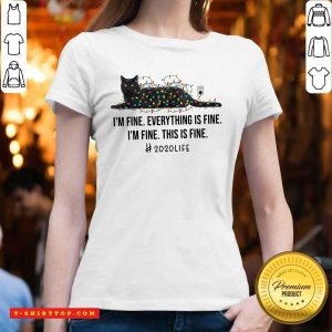 Black Cat Light I’m Fine Everything Fine I’m Fine This Is Fine 2020 Life Christmas T-shirt