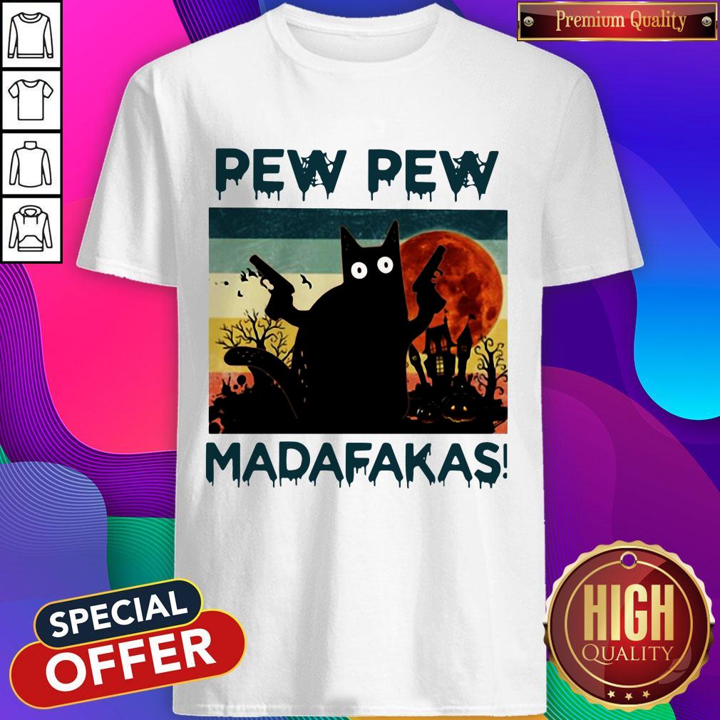 Black Cat Pew Pew Madafakas Halloween Shirt