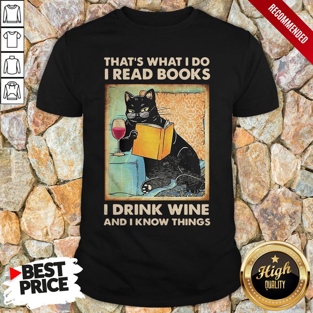 Black Cat That’S What I Do I Read Books I Drink Wine And I Know Things Shirt