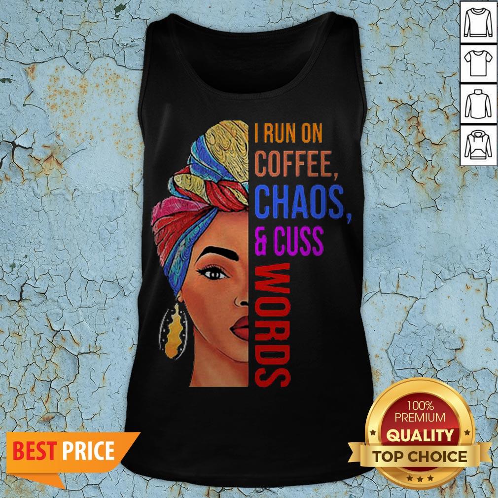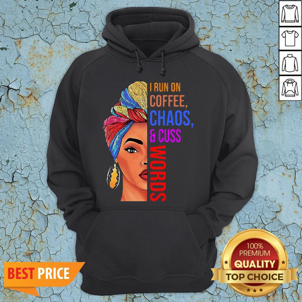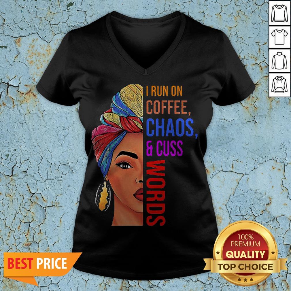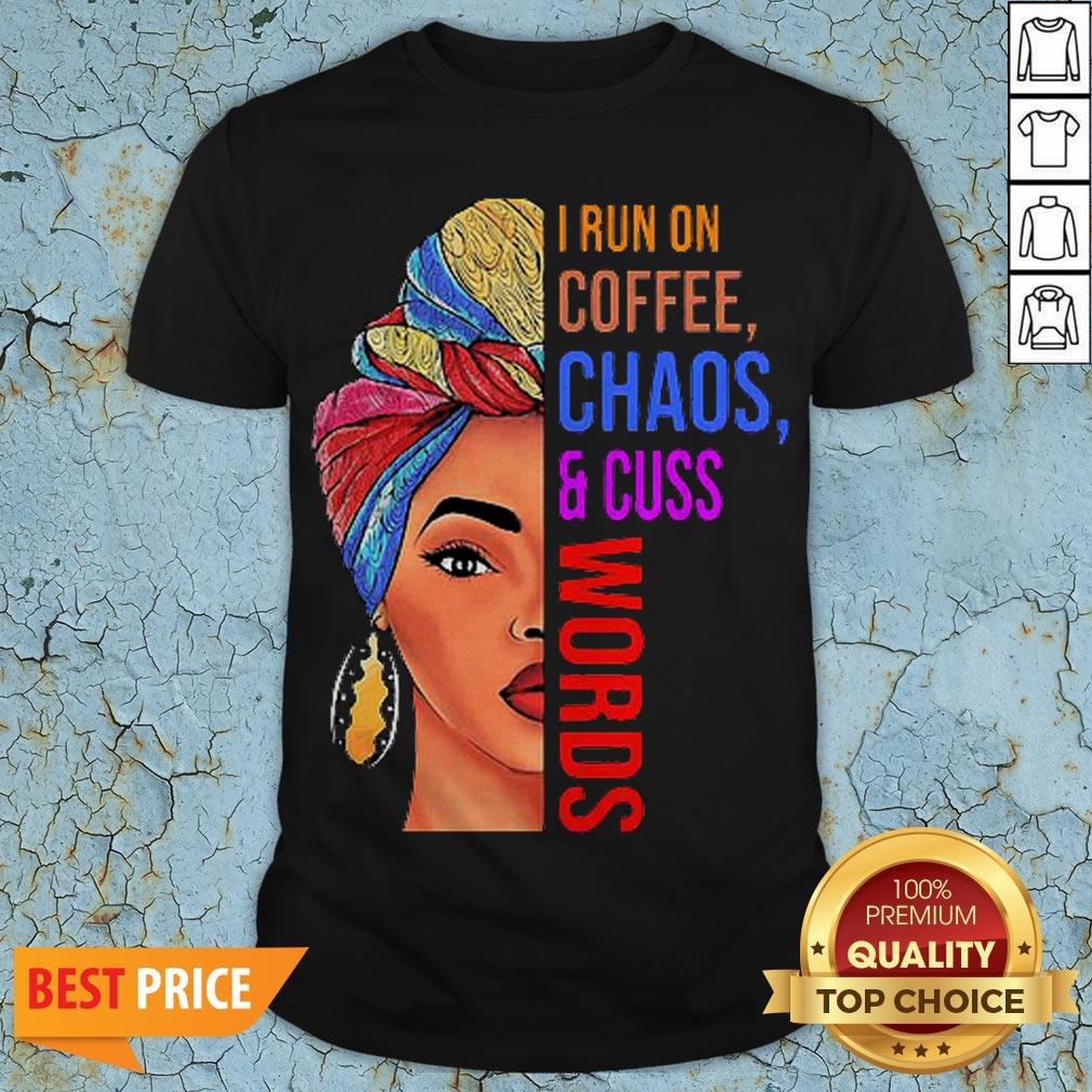 Black Woman I Run On Coffee Chaos And Cuss Words Shirt