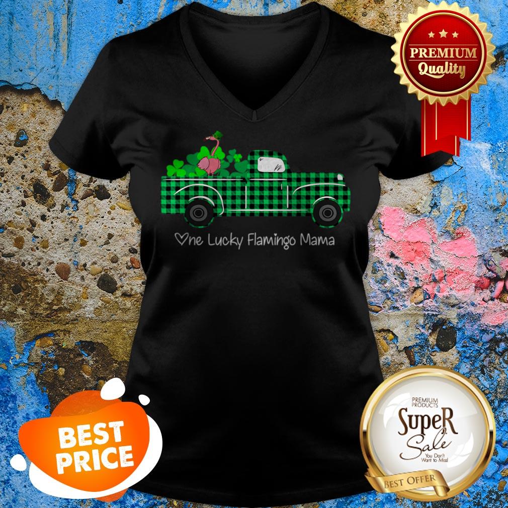 Buffalo Plaid Truck One Lucky Flamingo Mama St Patricks Day Shirt