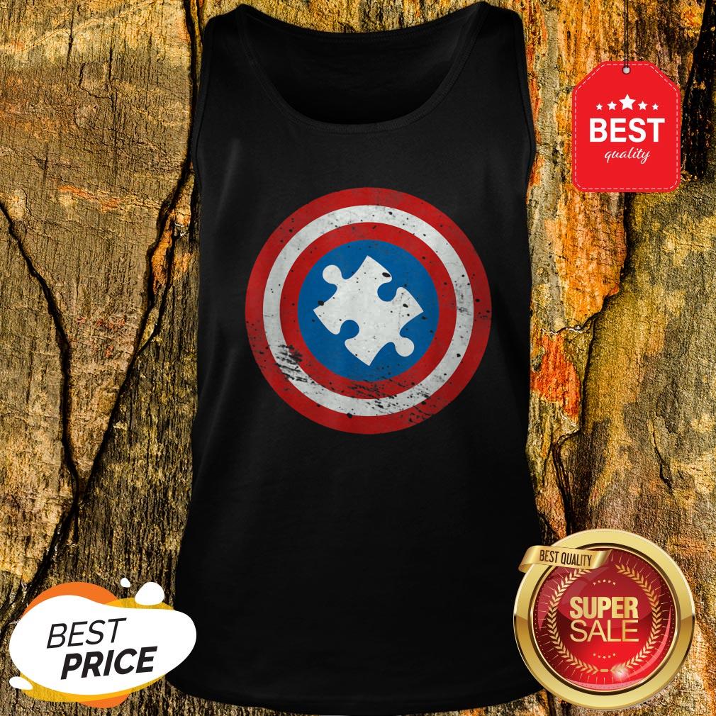 Captain Autism Distressed Shield Puzzle Logo Shirt
