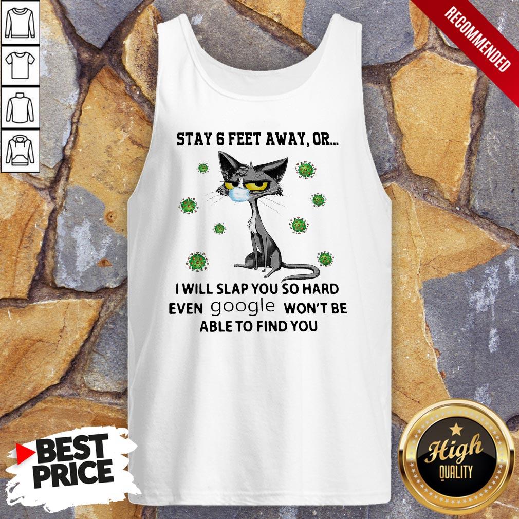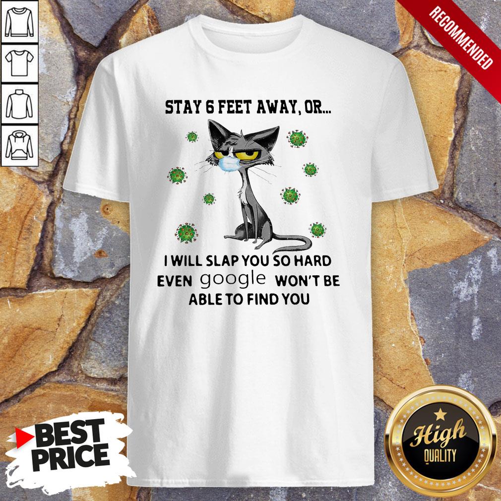 Cat Black Face Mask Stay 6 Feet Away Or I Will Slap You So Hard Even Google Won’t Be Able To Find You Shirt
