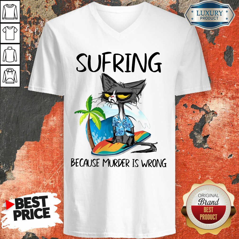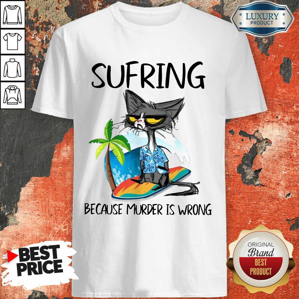 Cat Surfing Because Murder Is Wrong Shirt