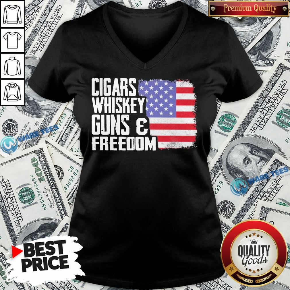 Cigars Whiskey Guns And Freedom 5 American Flag Shirt