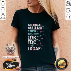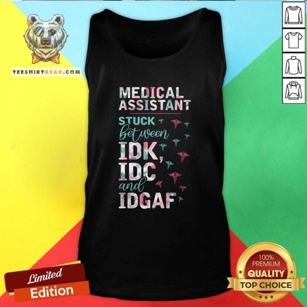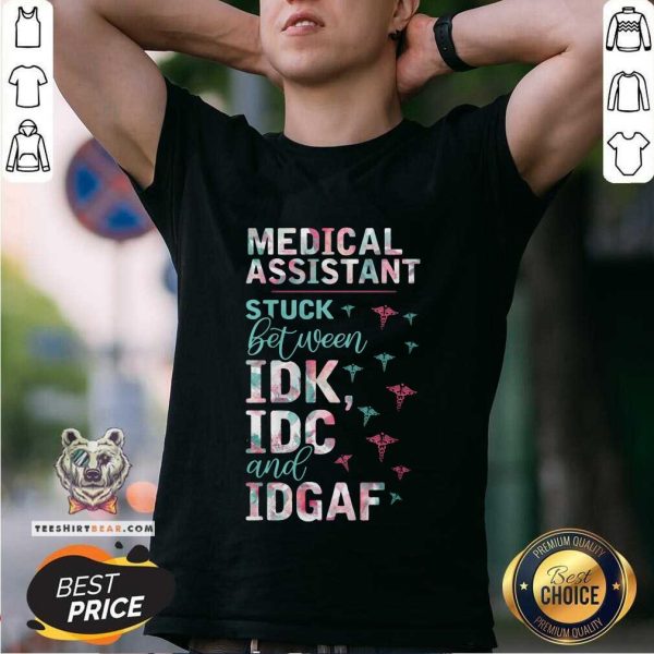 Colorful Medical Assistant Stuck Between IDK IDC And IDGAF Shirt