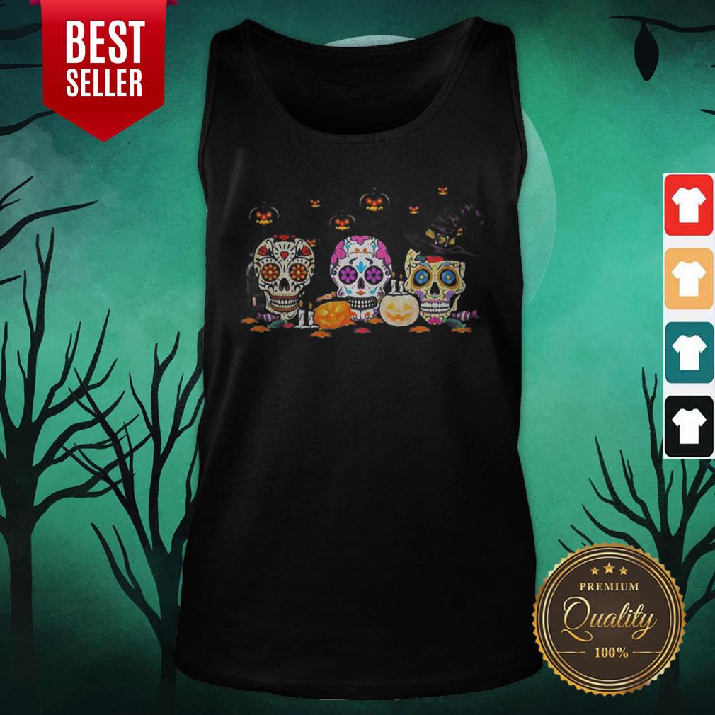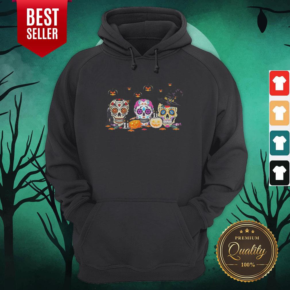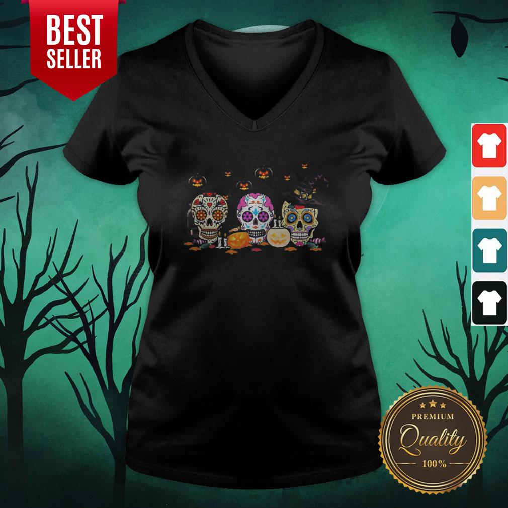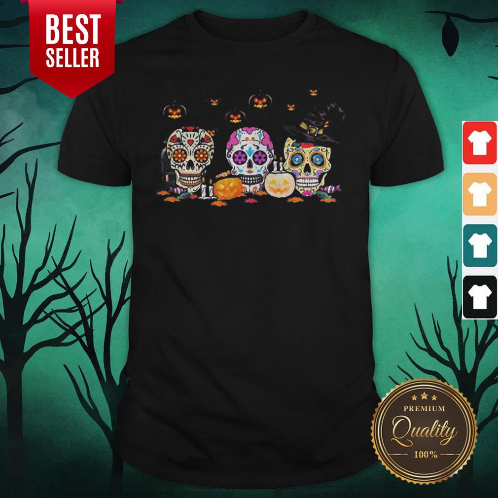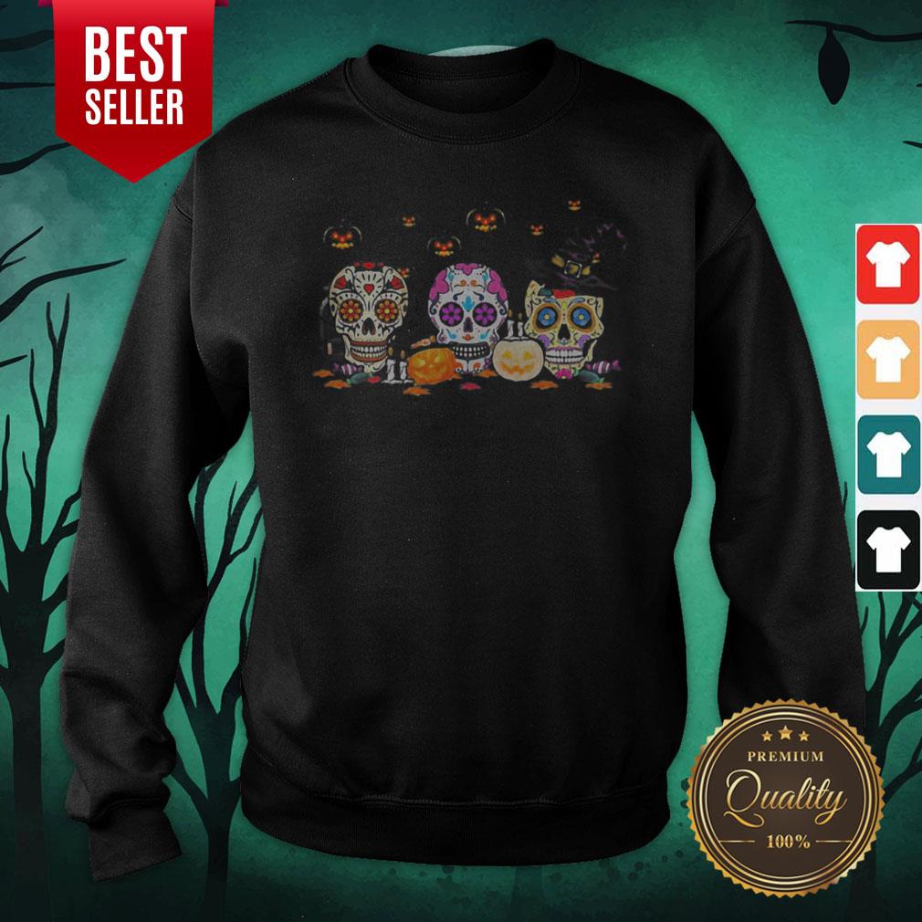 Colorful Skull Hippie Witch Pumpkin Halloween Shirt