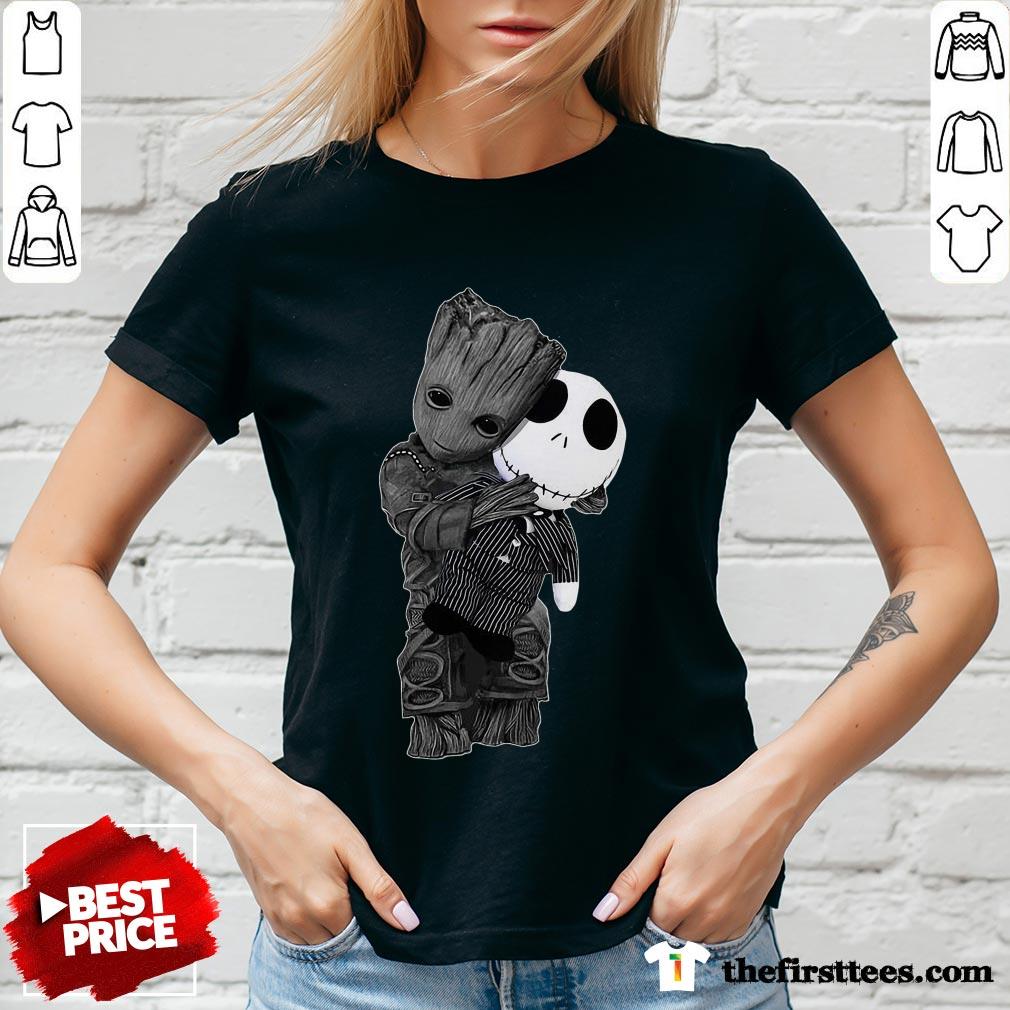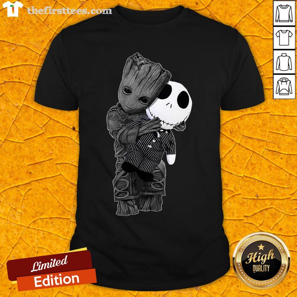 Cute Baby Groot Hug Jack Skellington Shirt