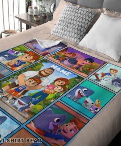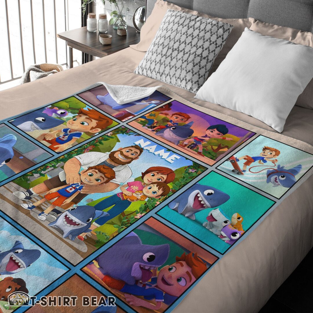 Cute Cartoon Sharkdog With Family Blanket Fleece Customized Blanket