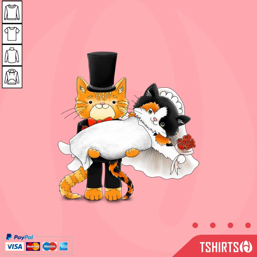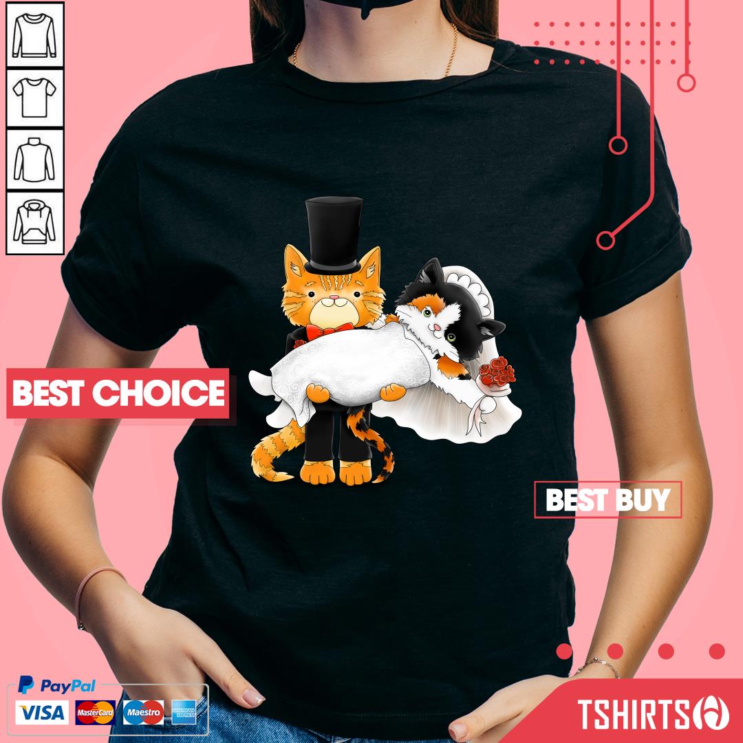 Cute Cat Couples Orange And Calico Just Married Wedding Shirt