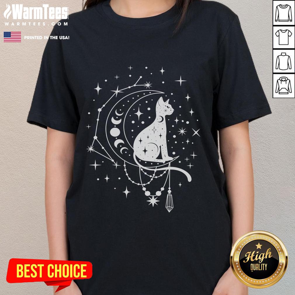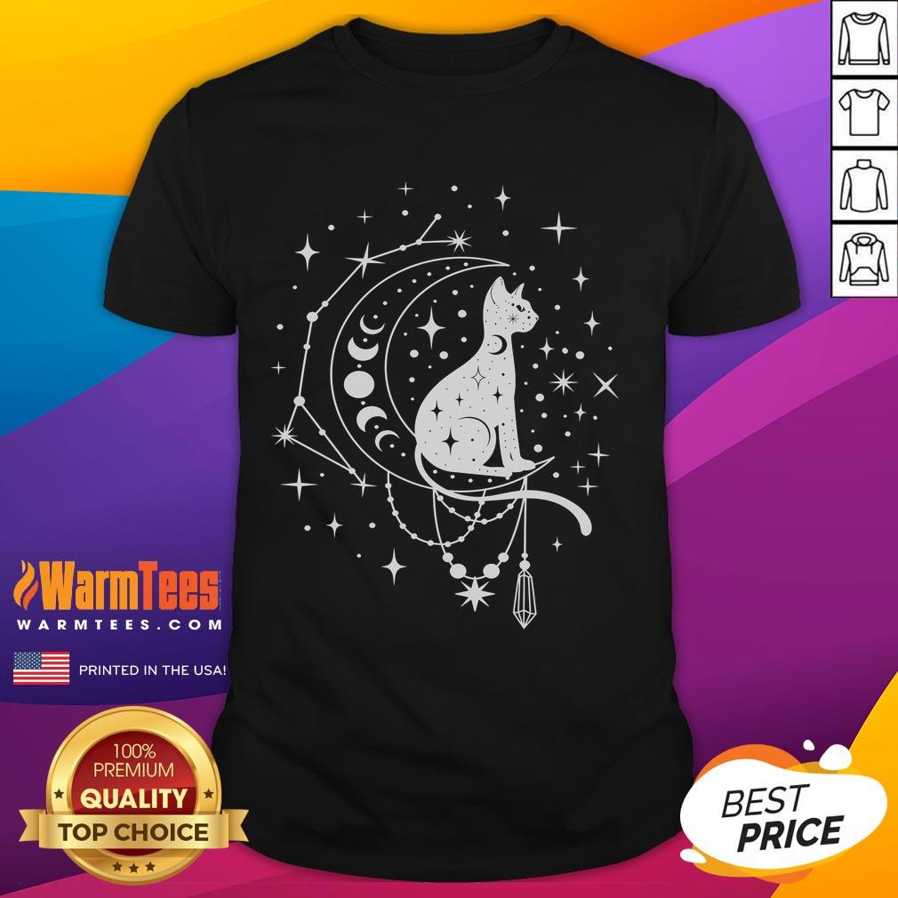 Cute Celestial Cat Crescent Moon Star Constellation Astrology T-Shirt