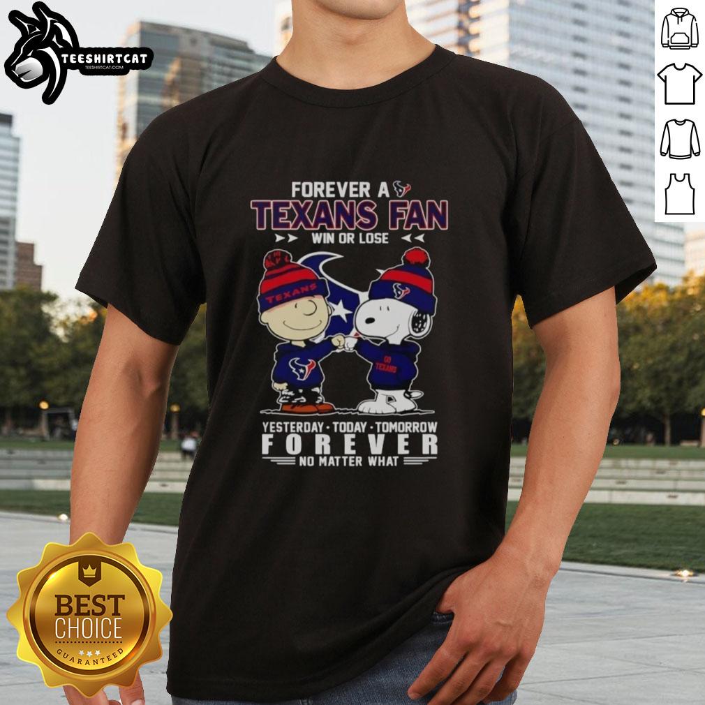 Cute Charlie Brown Fist Bump Snoopy Forever A Houston Texans Fan Win Or Lose No Matter What T-Shirt