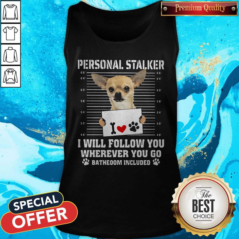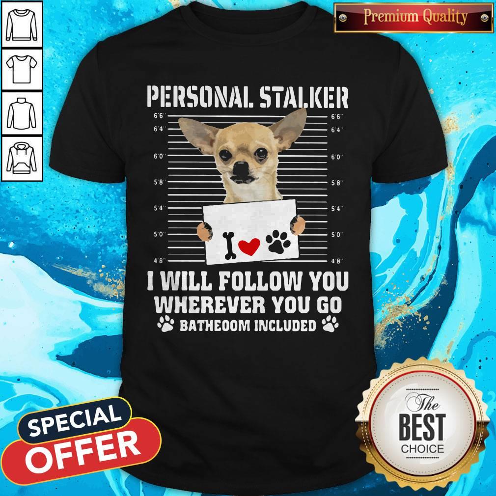 Cute Chihuahua Personal Stalker I Will Follow You Wherever You Go Bathroom Included Paws Shirt