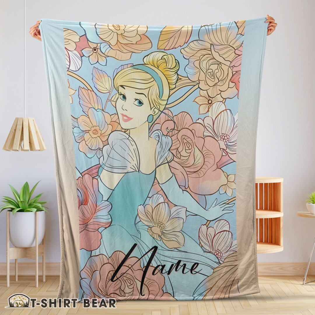 Cute Disney Cinderella Elegant Princess Bloom Blanket Fleece Customized Blanket