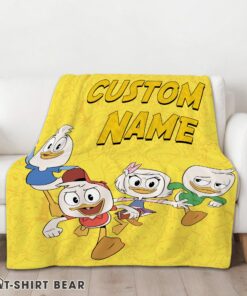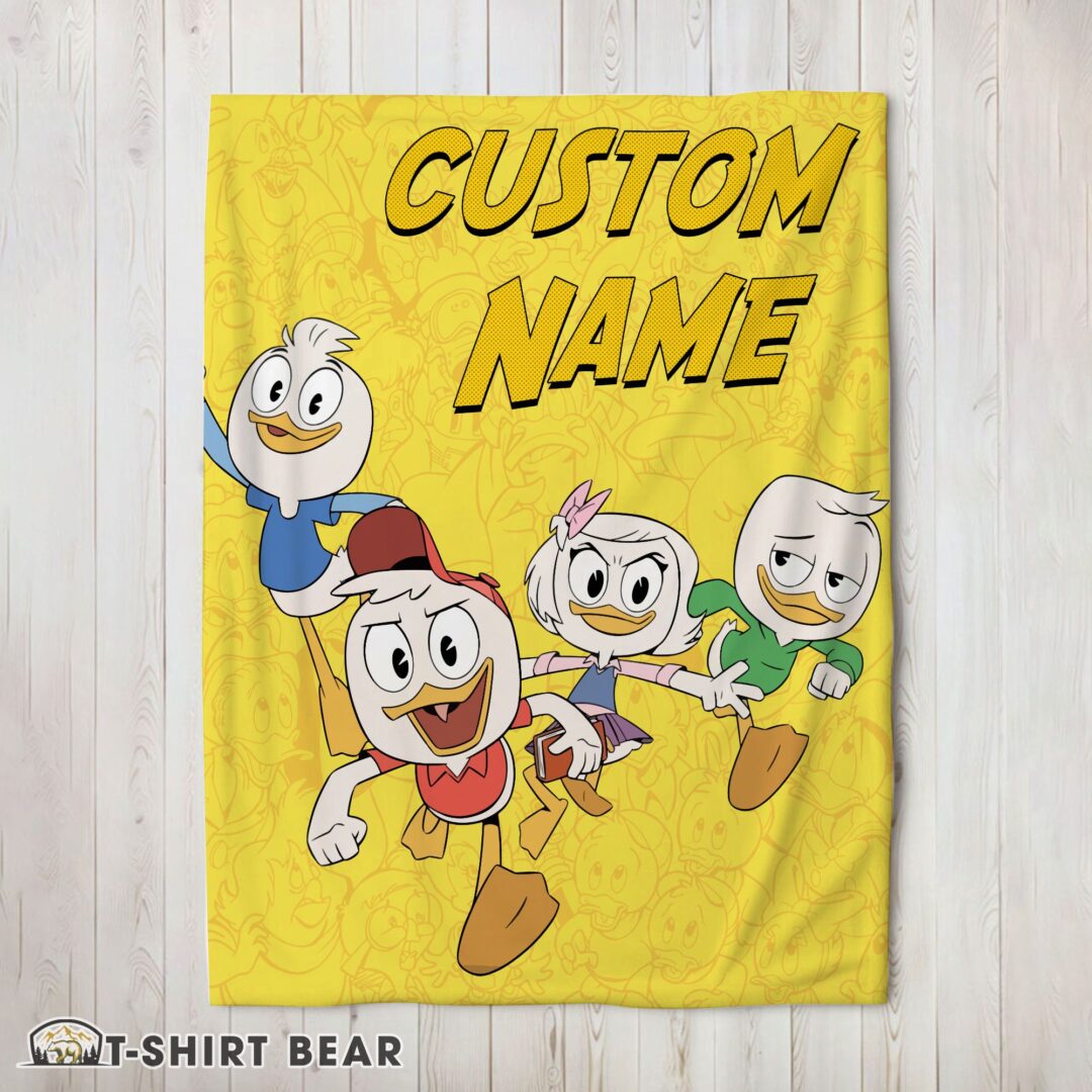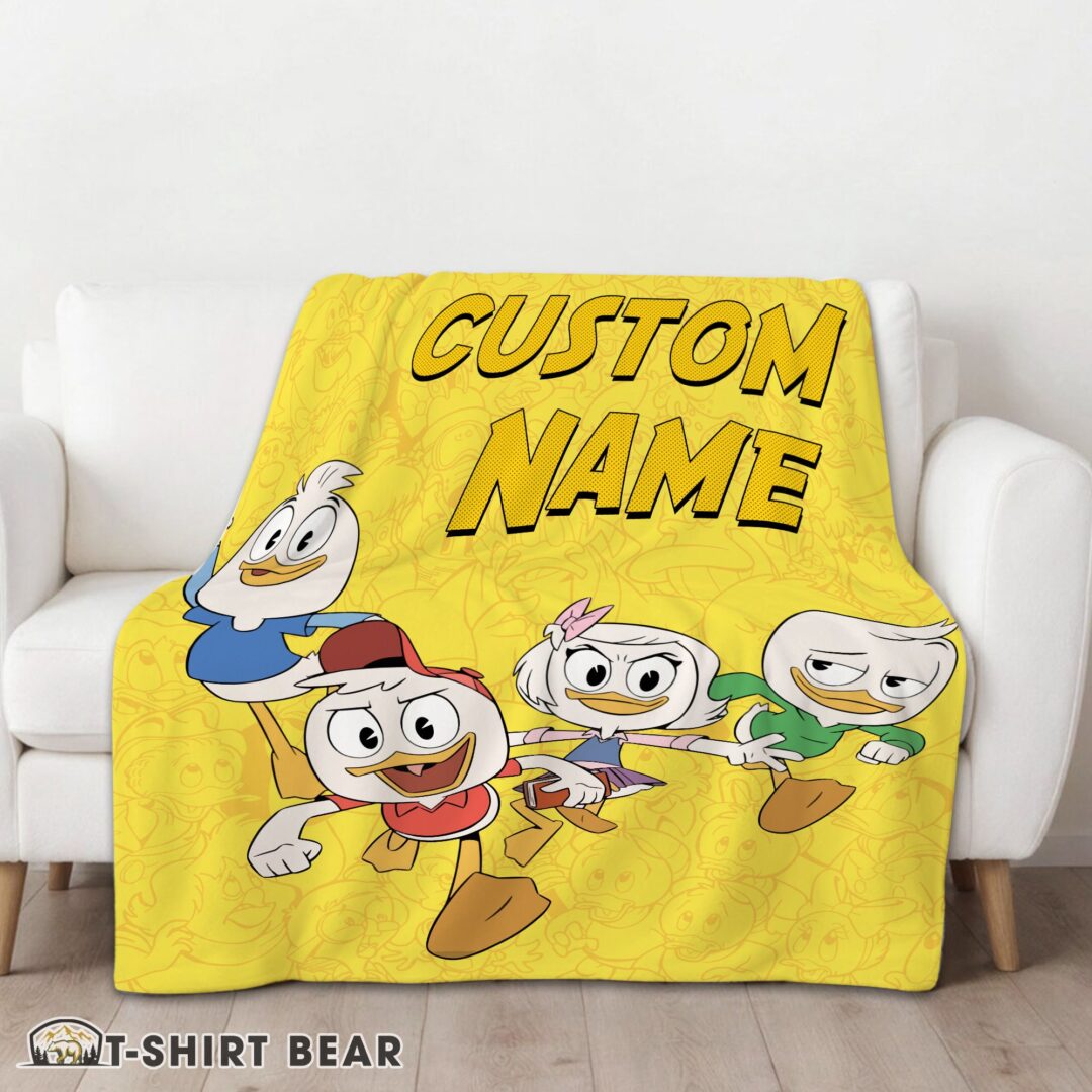 Cute Disney Ducktales Huey Dewey Louie Webby Yellow Cartoon Collage Blanket Fleece Customized Blanket