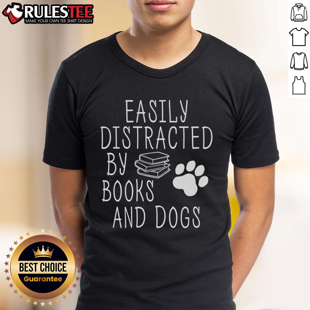 Cute Easily Distracted By Books And Dogs T-Shirt