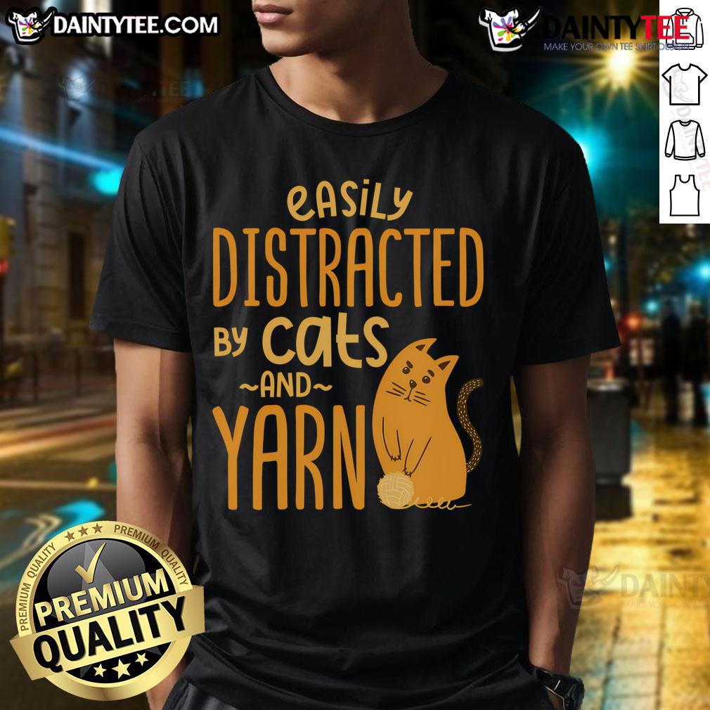 Cute Easily Distracted By Cats And Yarn Quilters Crochet Lovers T-Shirt
