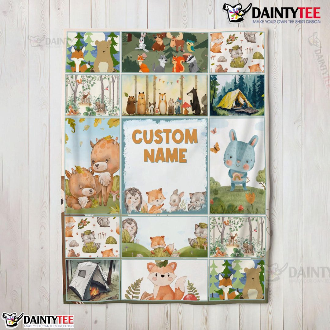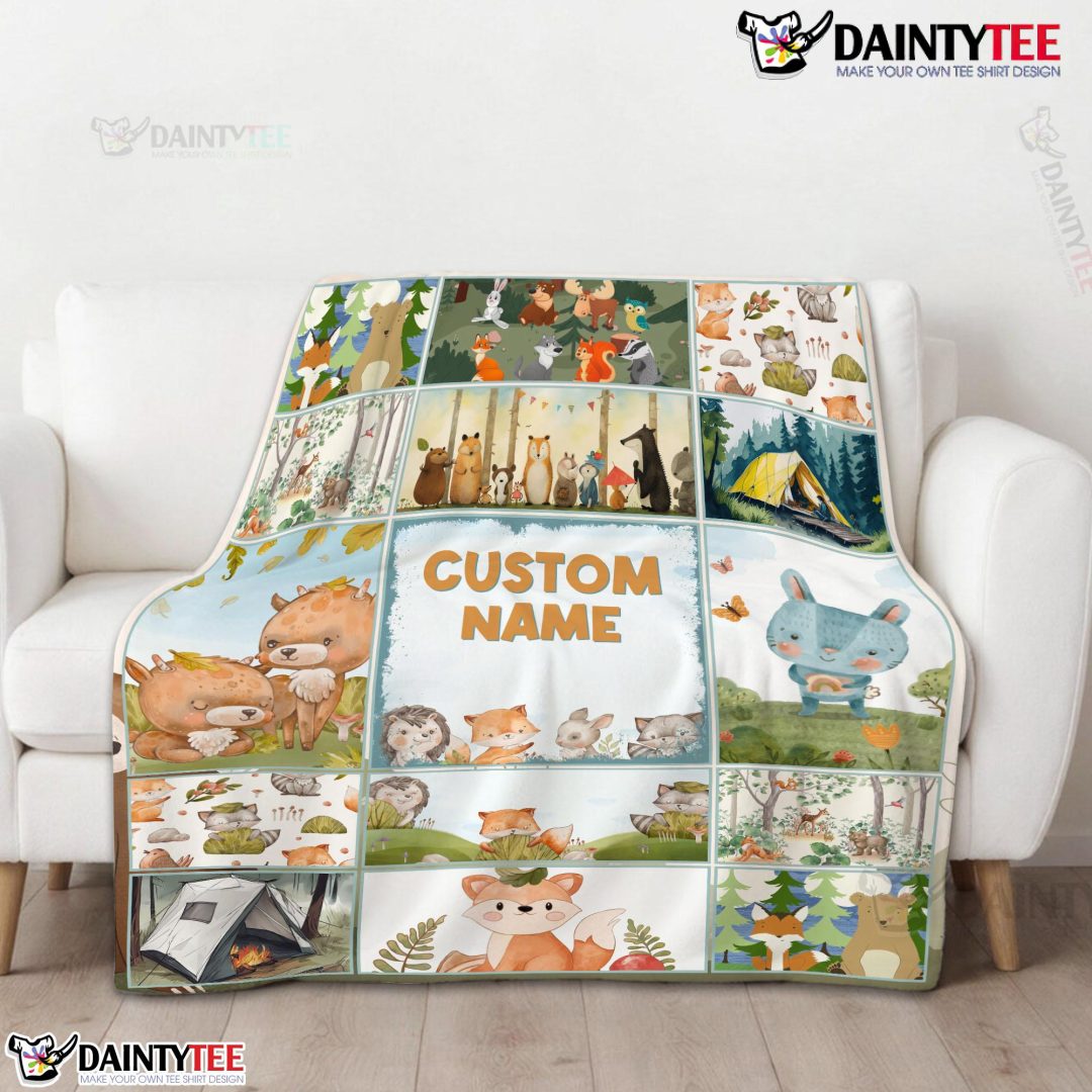 Cute Forest Animals Collage Whimsical Blanket Fleece Customized Blanket