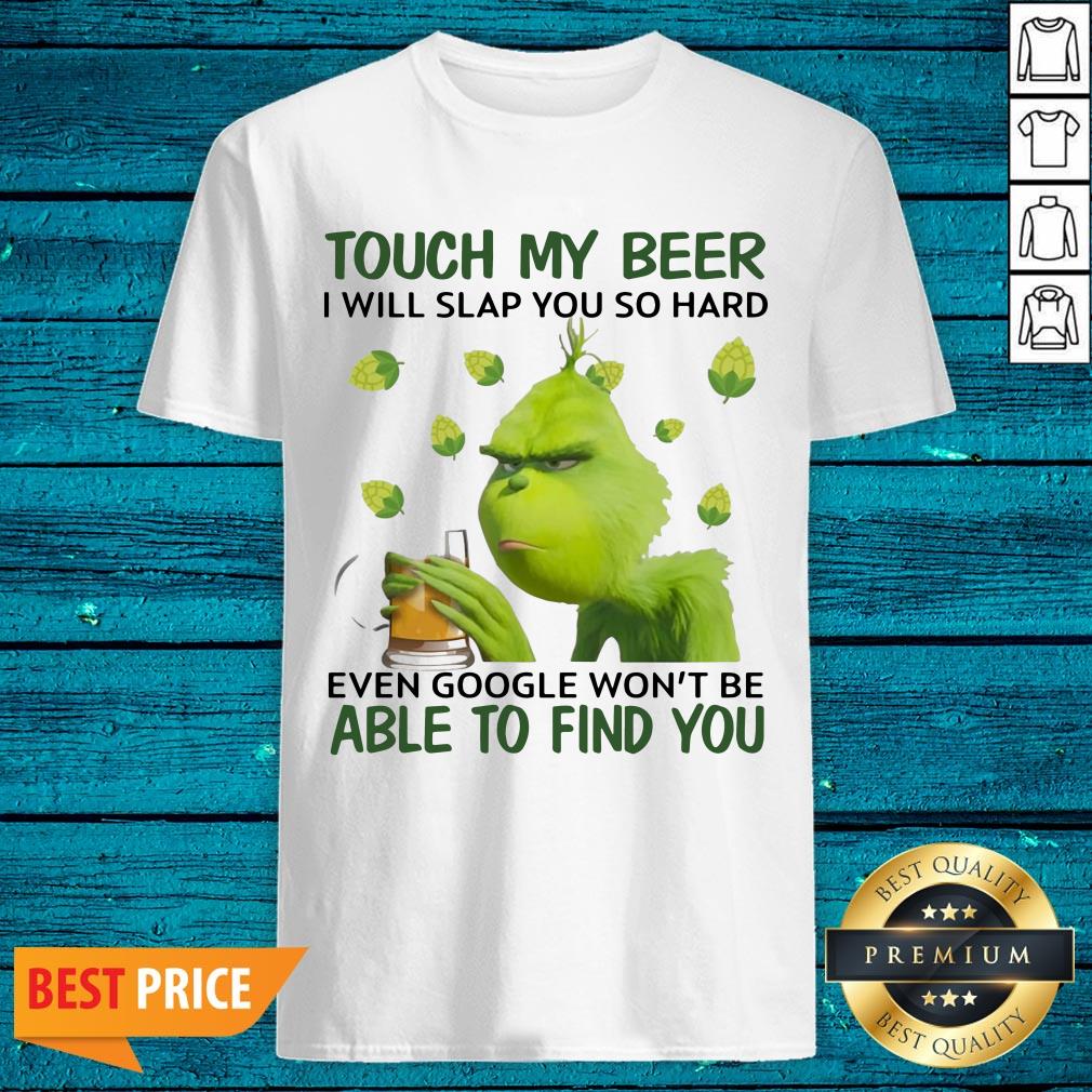 Cute Grinch Touch My Beer I Will Slap You So Hard Even Google Wont Be Able To Find You Shirt