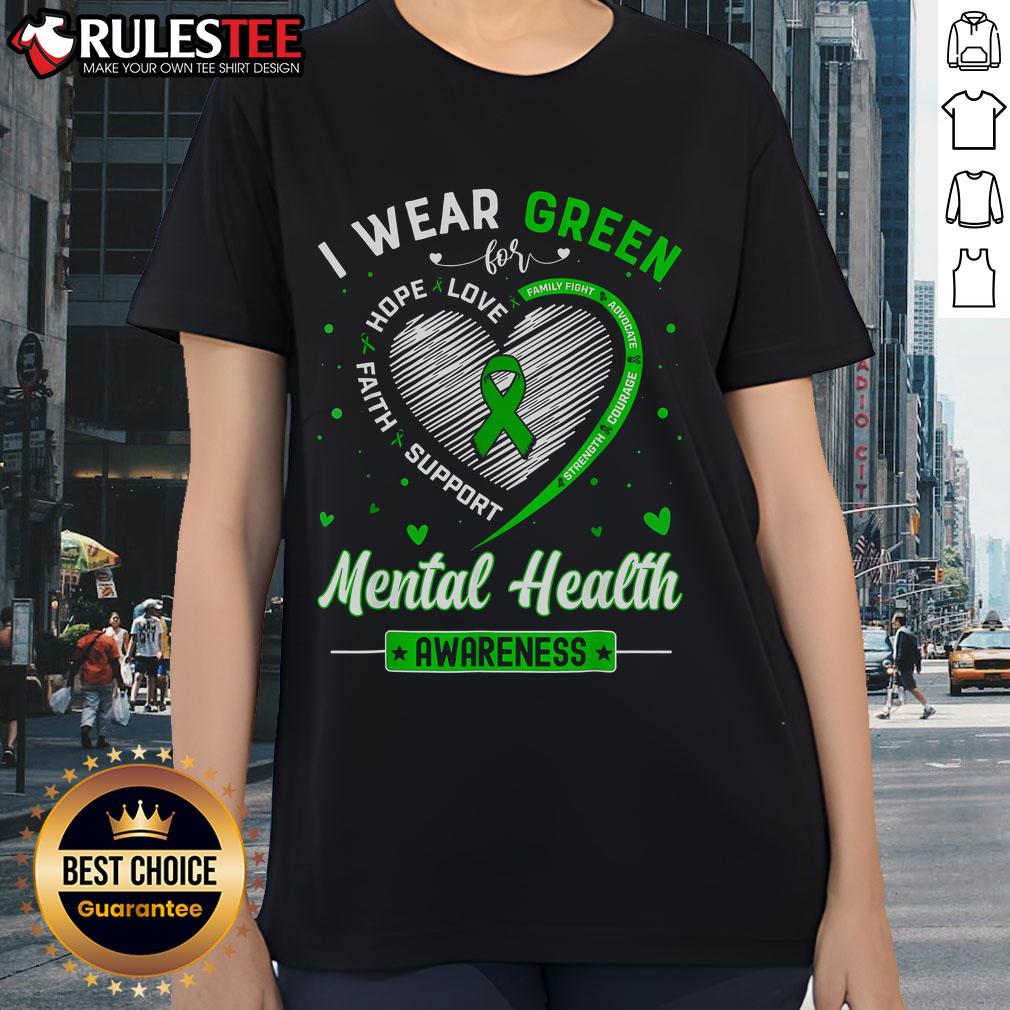 Cute Heart I Wear Green For Mental Health Awareness Month T-Shirt