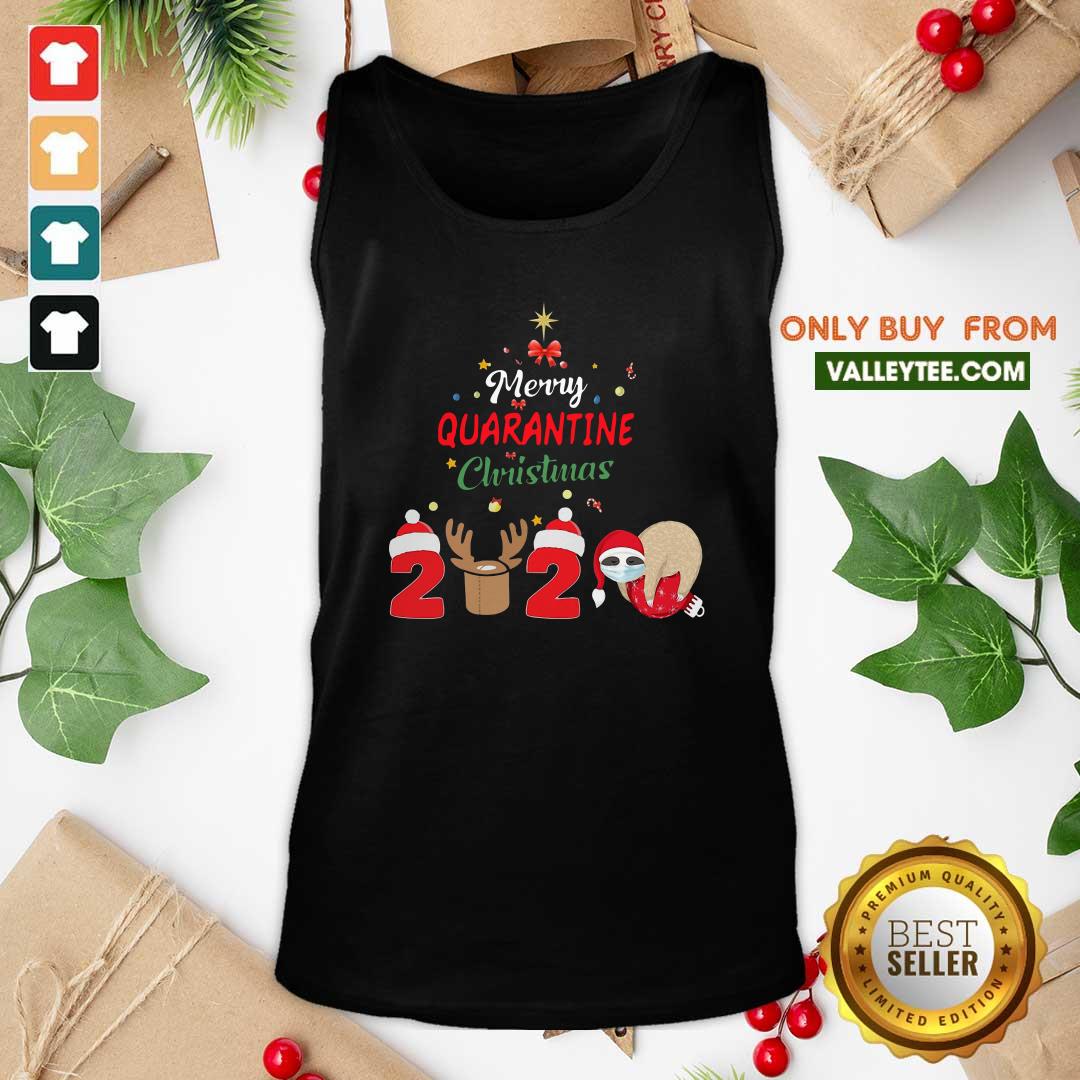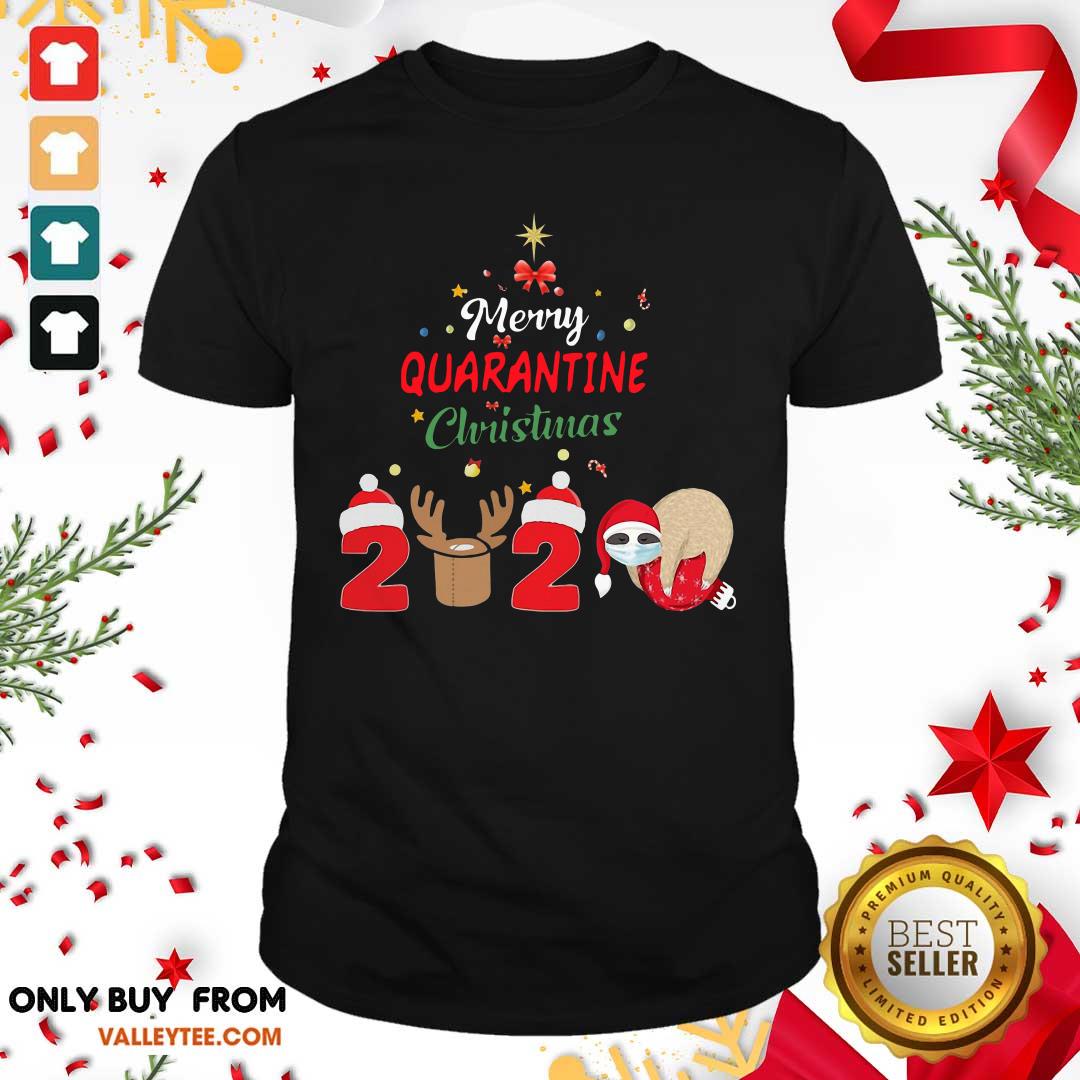 Cute Merry Quarantine Christmas 2020 Sloth Hat Santa Christmas Shirt