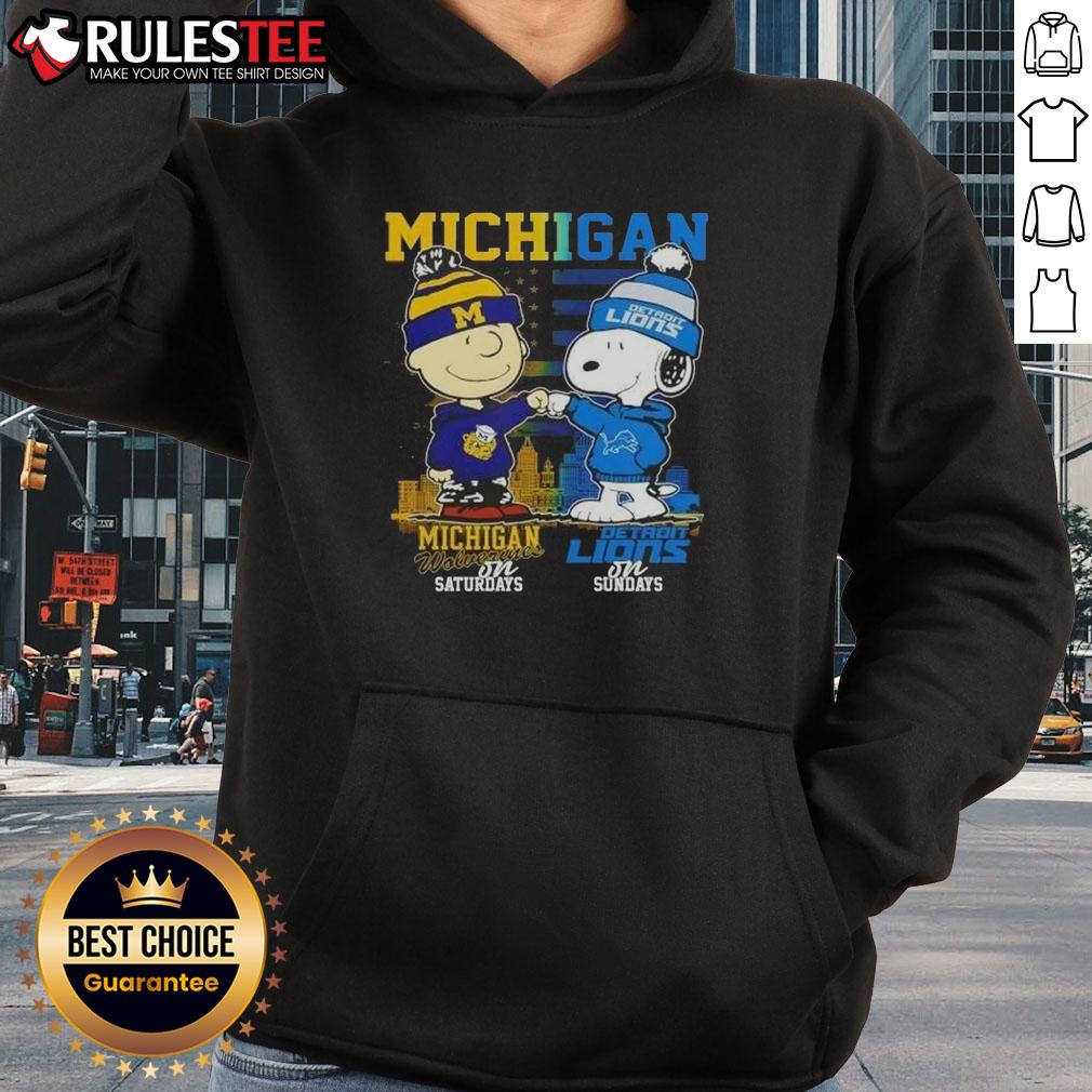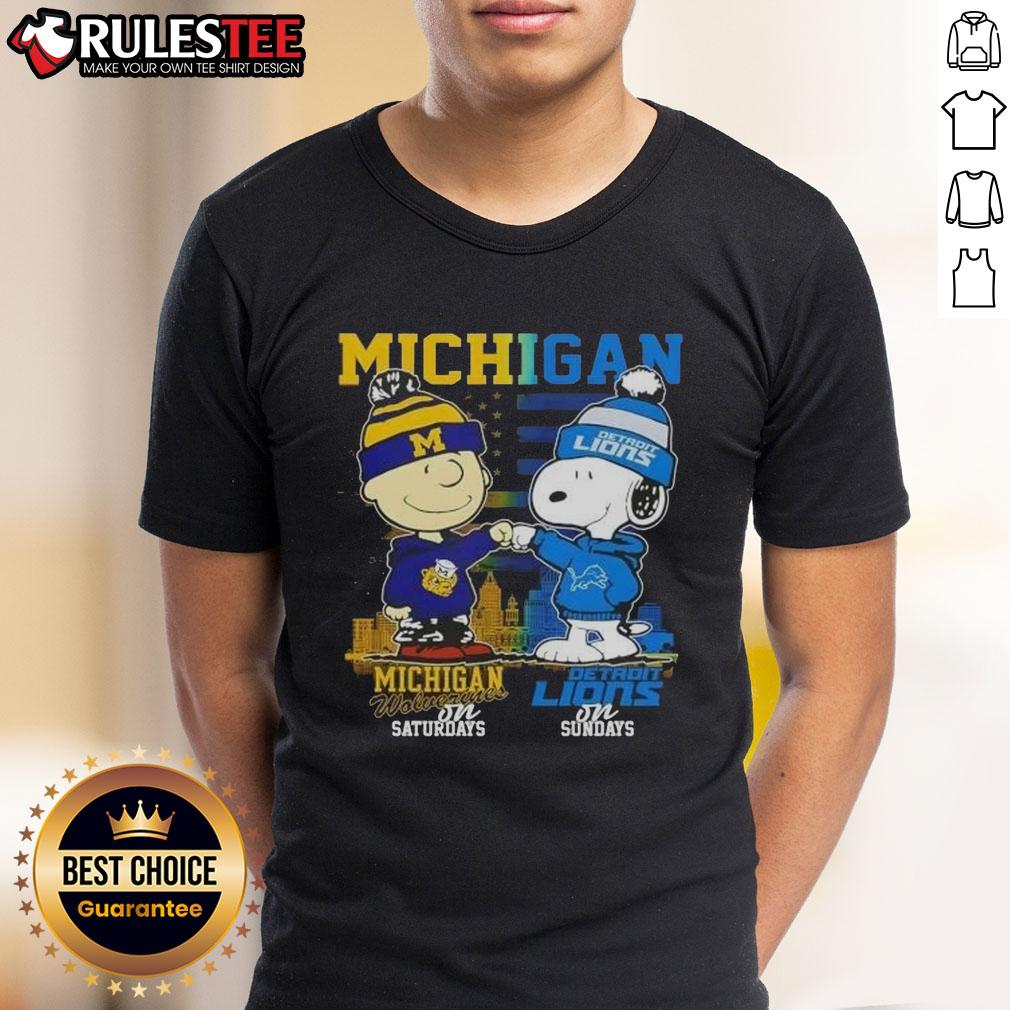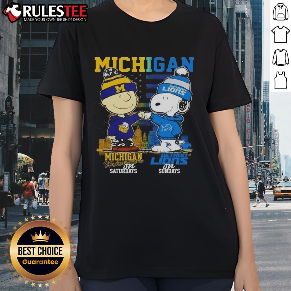 Cute Michigan Sports Charlie Brown Wolverines On Saturdays X Snoopy Detroit Lions On Sundays Skyline T-Shirt