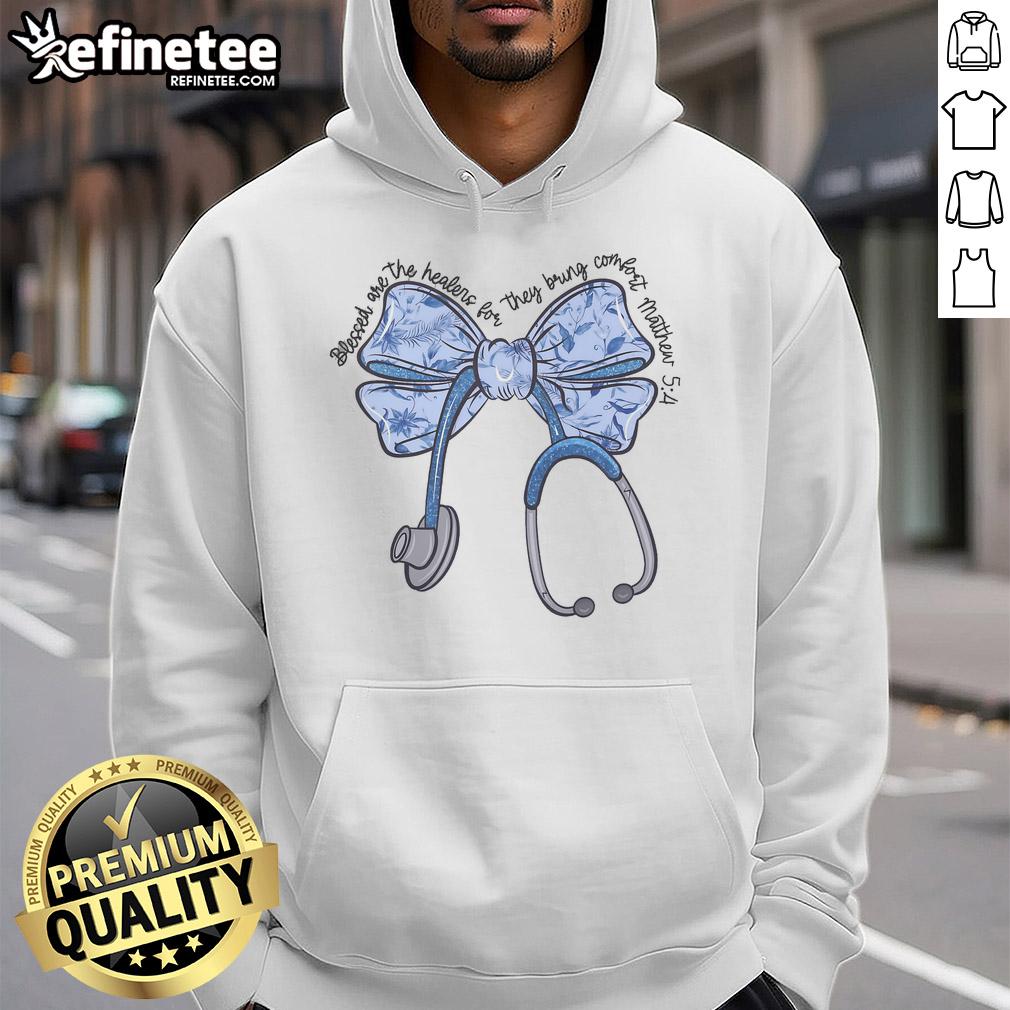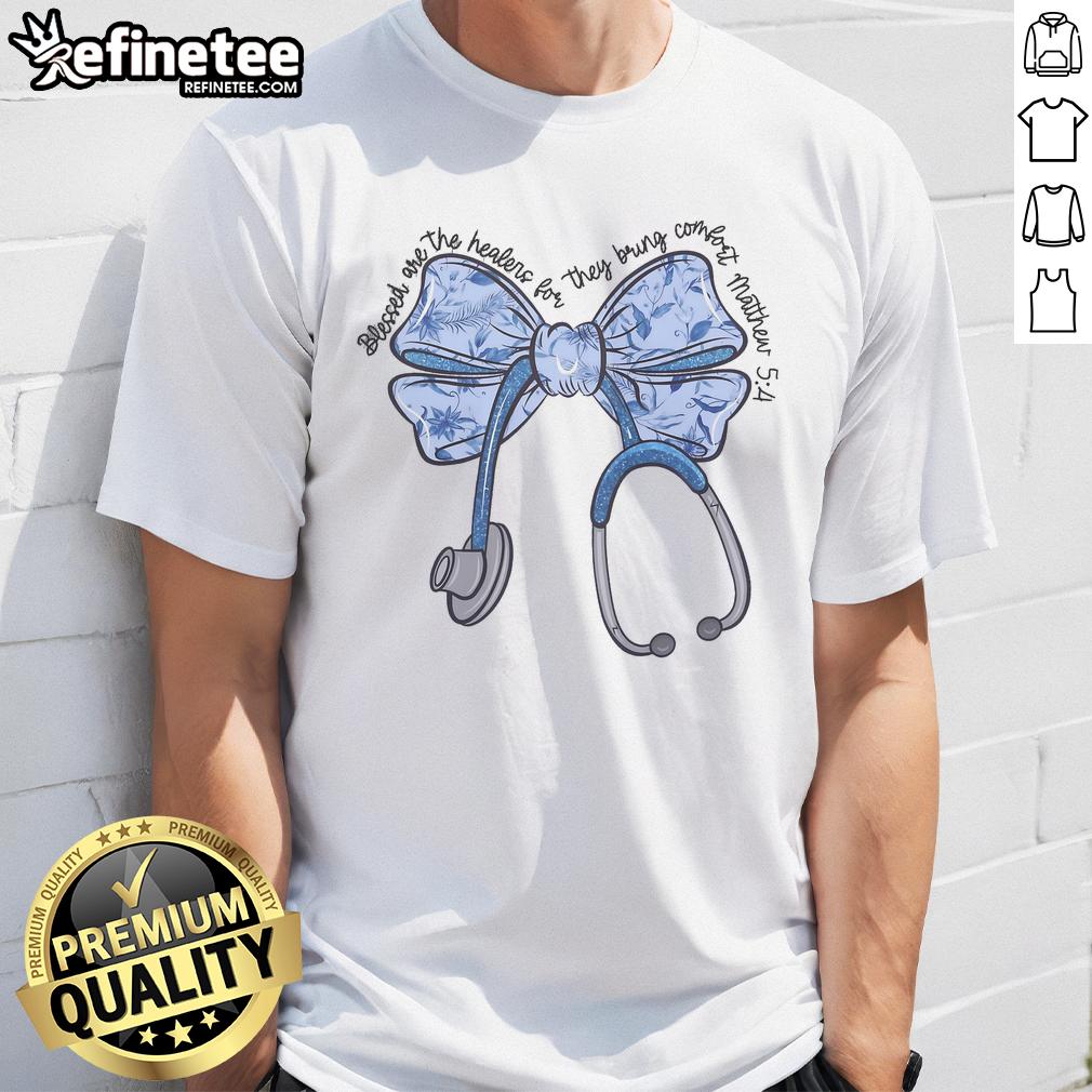 Cute Nurse Toile Bow Matthew 54 Christian Nurse Blessed Are The Healers T-Shirt