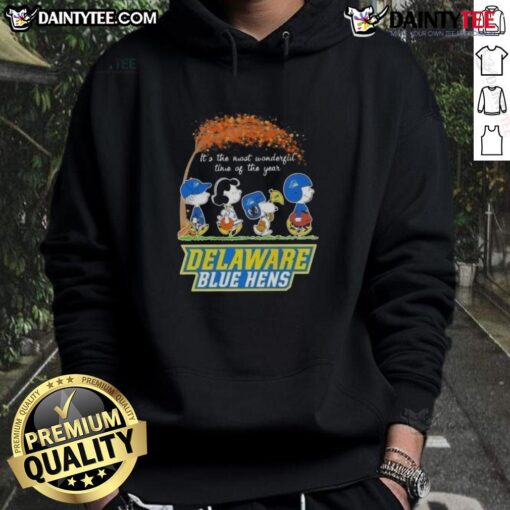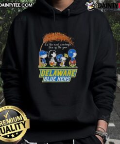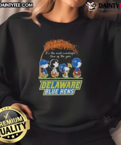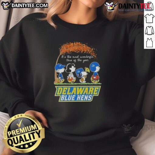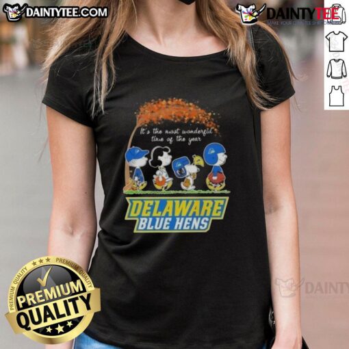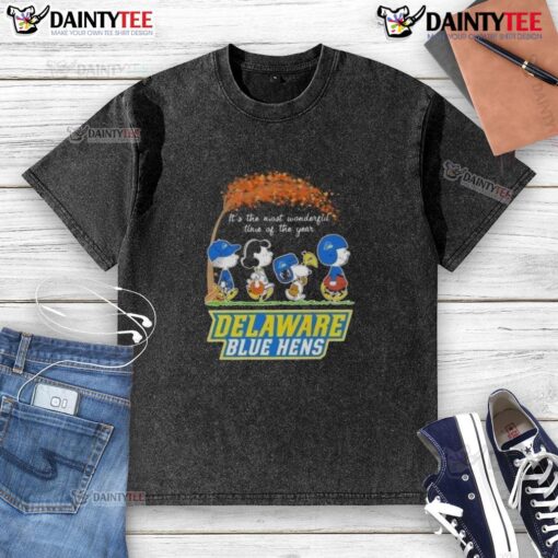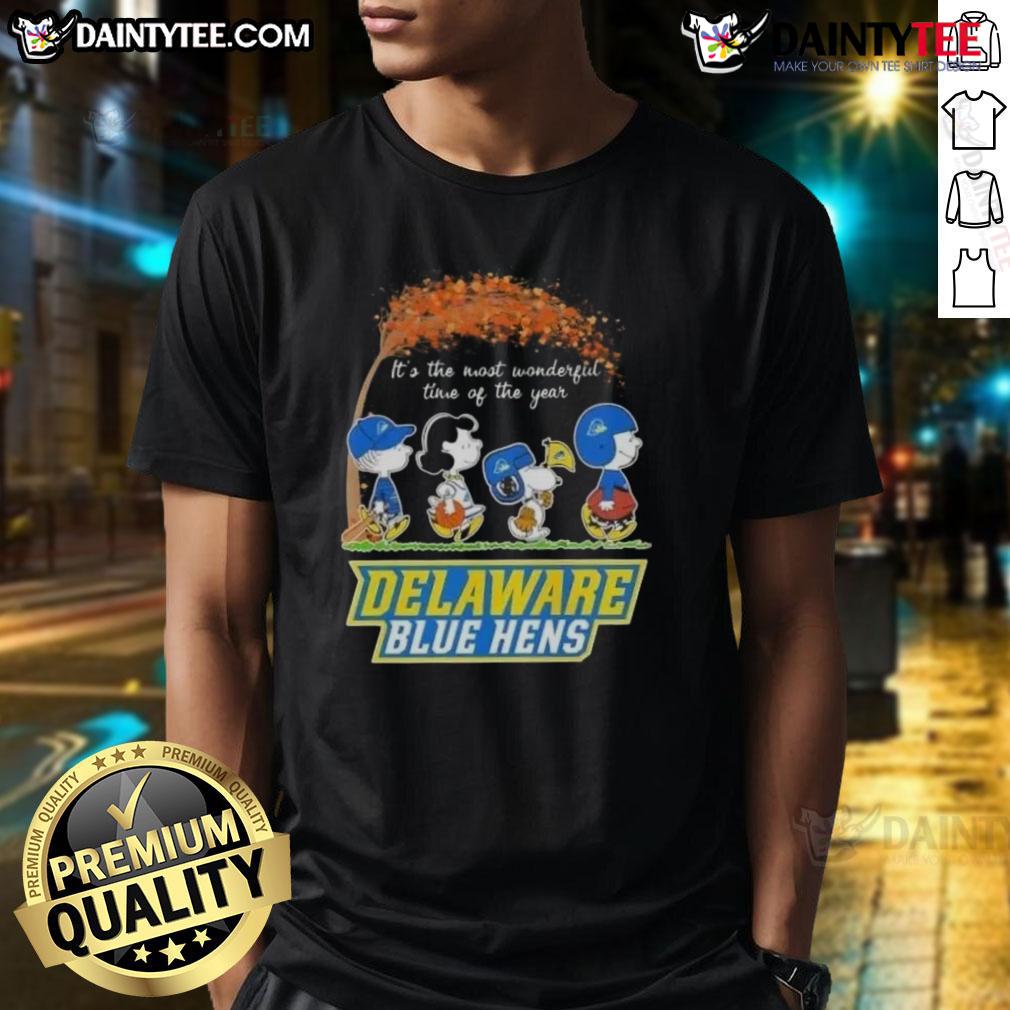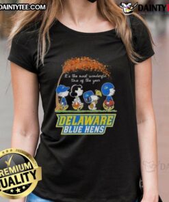 Cute Peanuts Snoopy And Friends It’s The Most Wonderful Time Of The Year Delaware Blue Hens T-Shirt