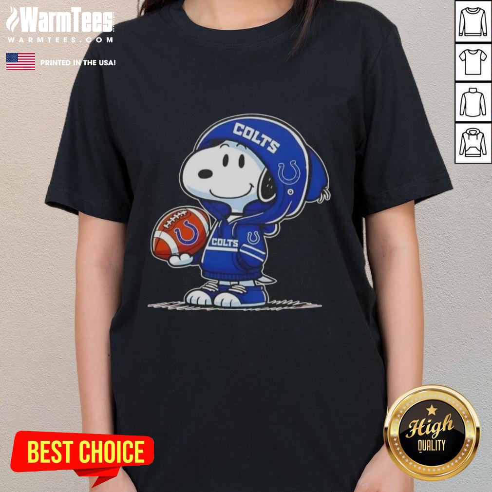 Cute Peanuts Snoopy Wearing Hoodie Indianapolis Colts And Smiling At Fans T-Shirt