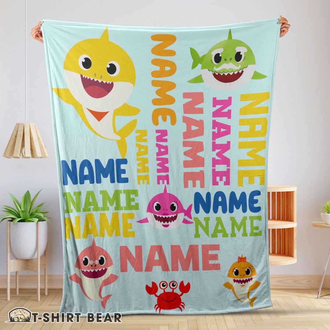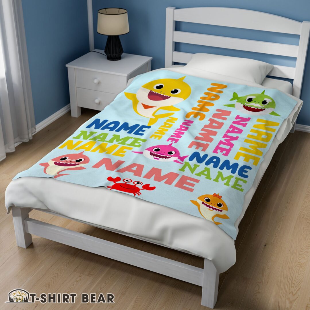 Cute Personalized Baby Shark Blanket Fleece Customized Blanket
