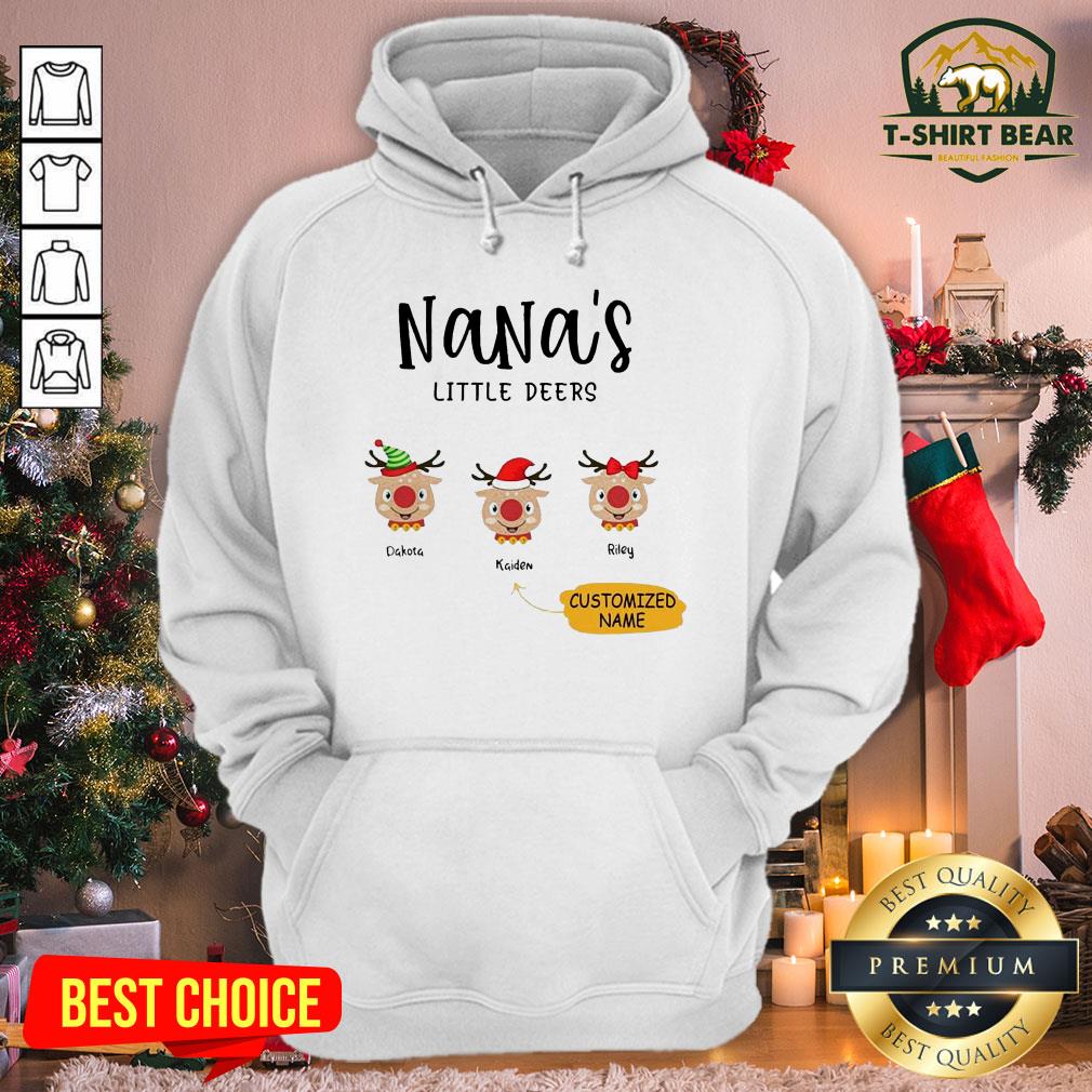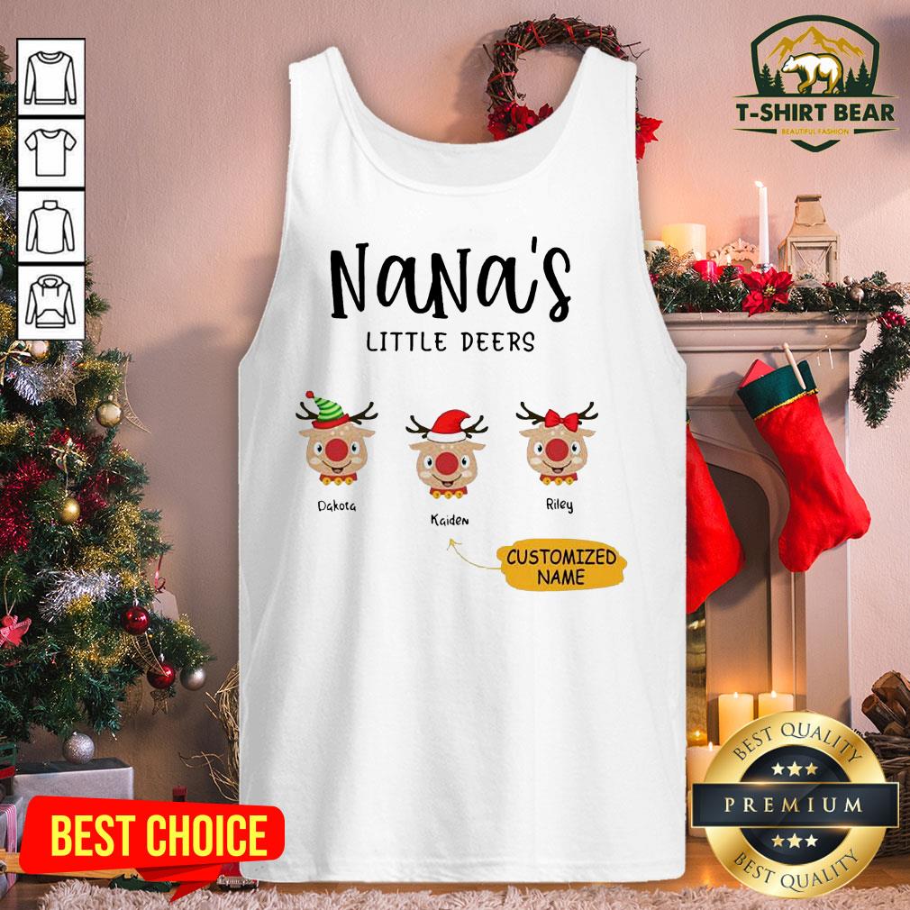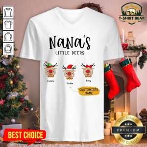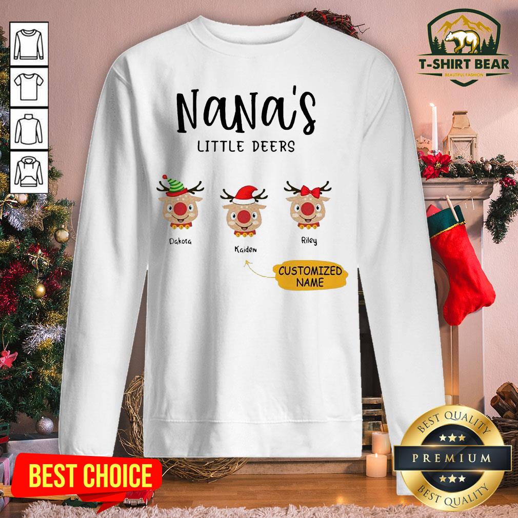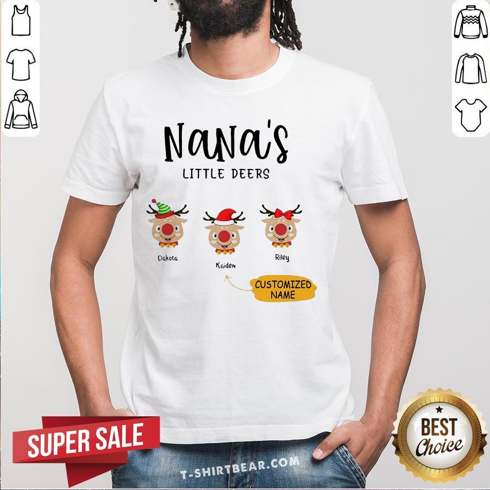 Cute Reindeer Santa Personalized Nana’s Little Deers Customized Name Shirt