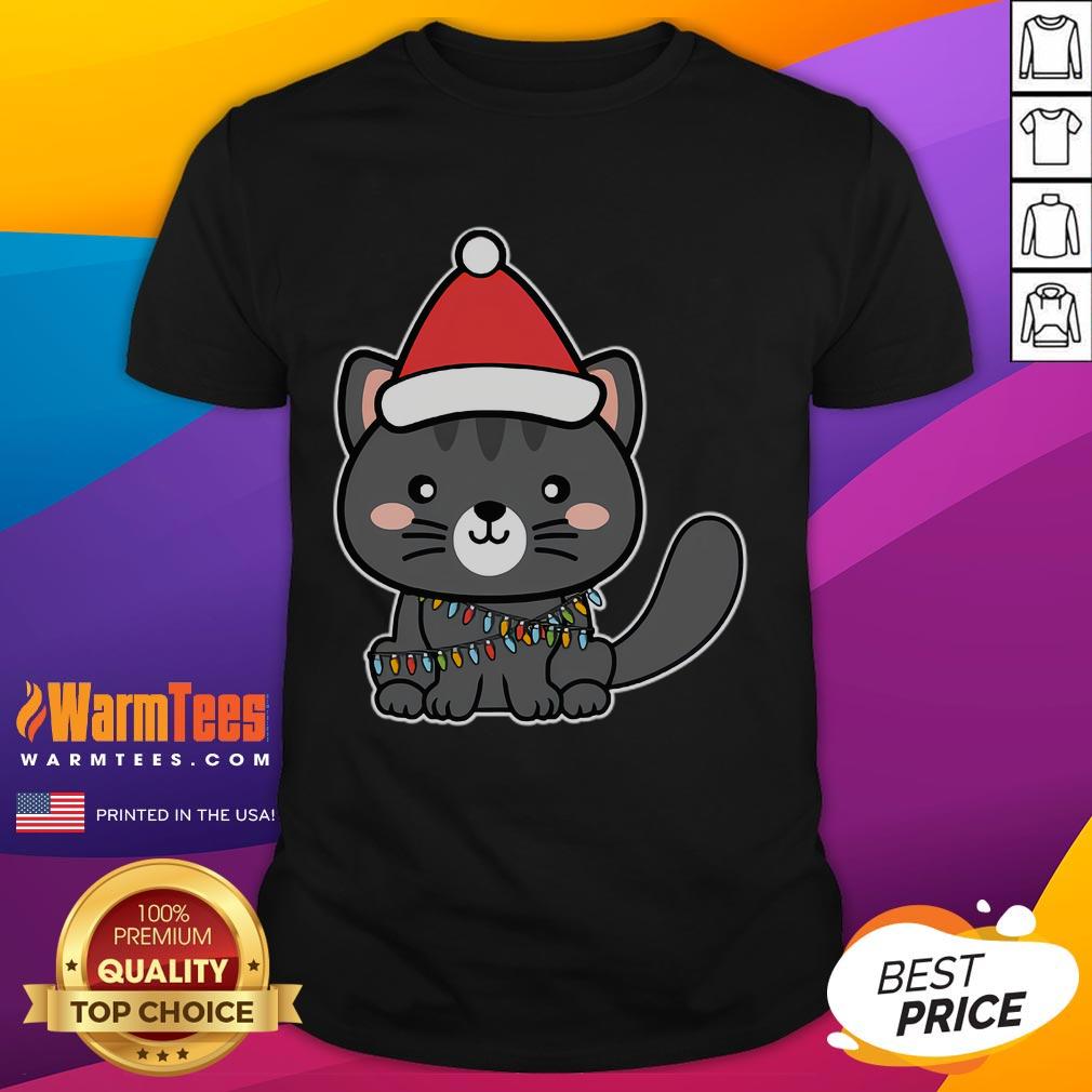 Cute Santa Cat Wearing Christmas Lights T-Shirt