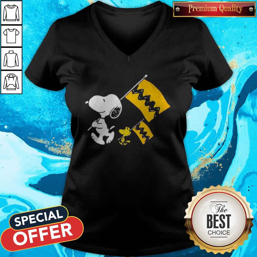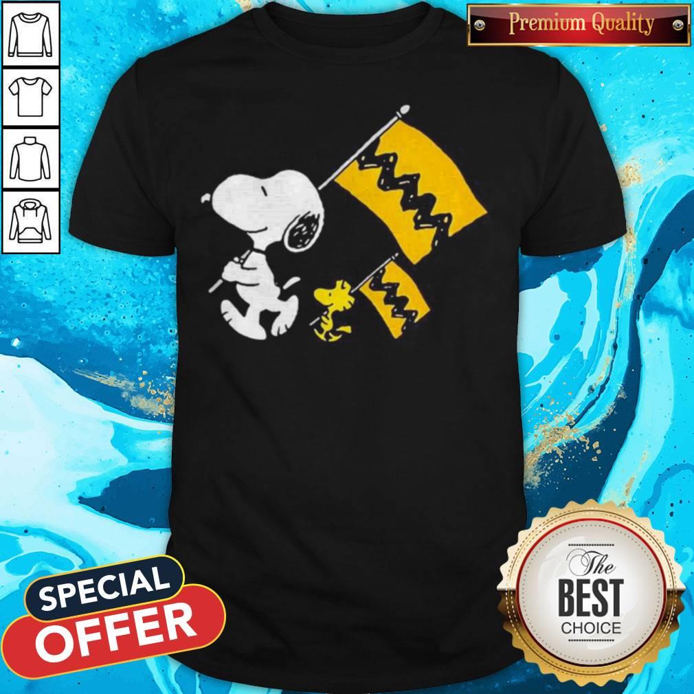 Cute Snoopy And Woodstock Holding Flag Shirt