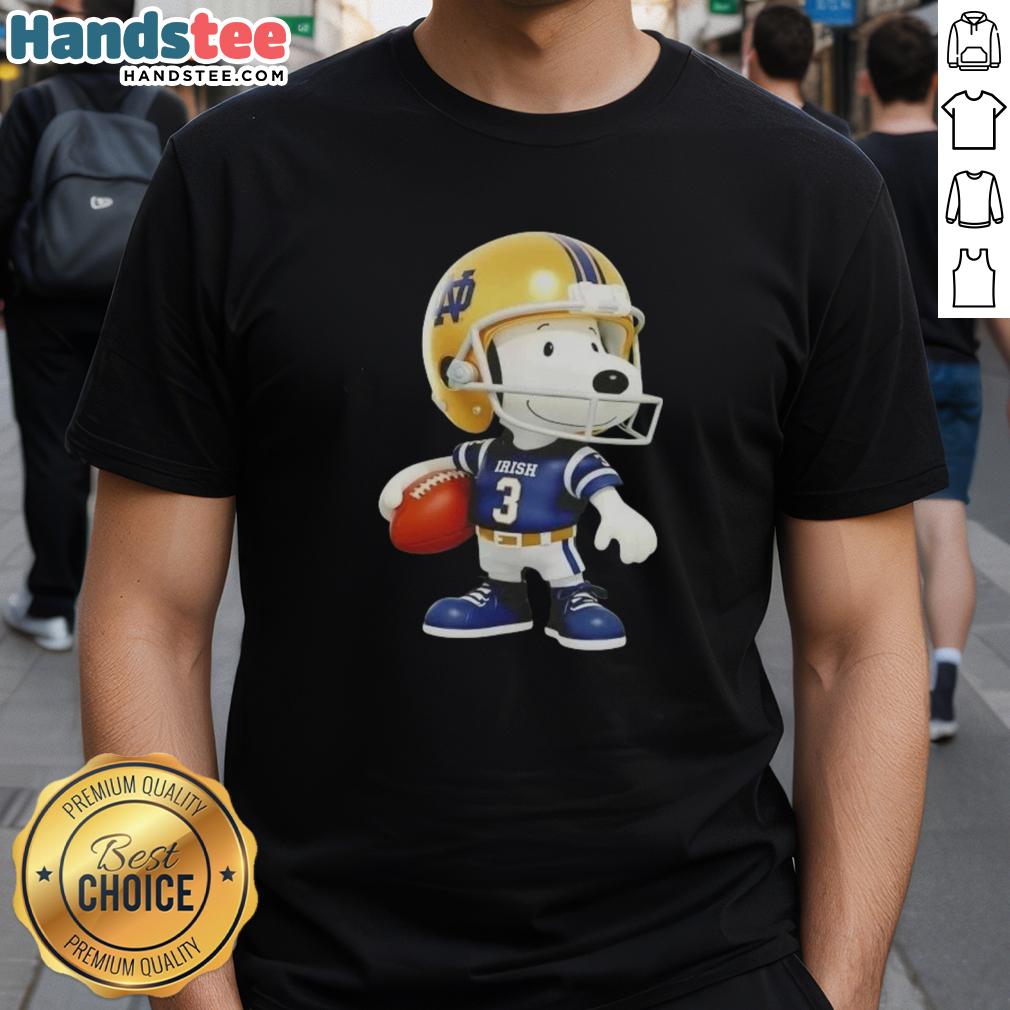 Cute Snoopy Is Holding A Ball And Smiling At Notre Dame Fighting Irish Fans T-Shirt