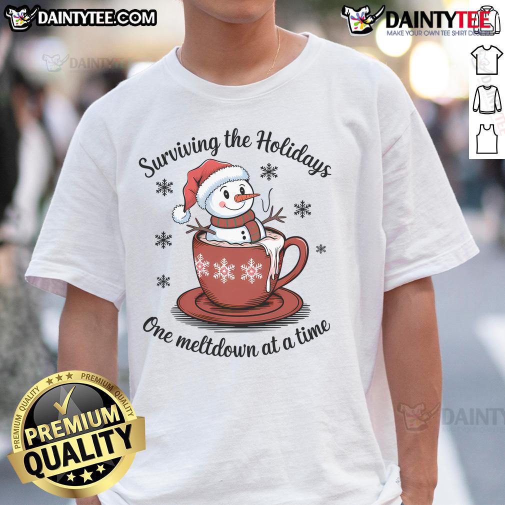 Cute Surviving The Holidays One Meltdown At A Time Christmas Snowman Hot Cocoa T-Shirt