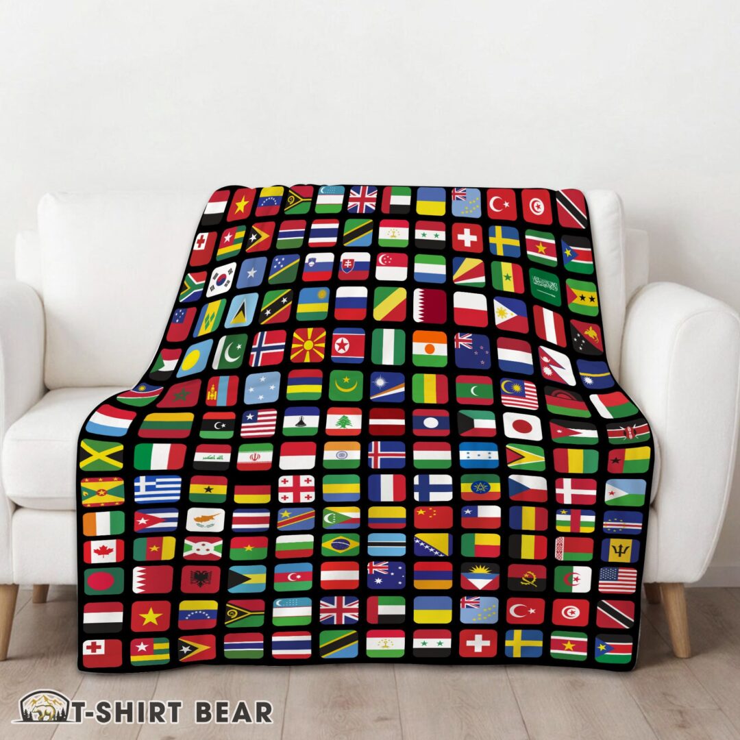 Cute World Flags Grid Colorful International Countries Flag Blanket Fleece Blanket