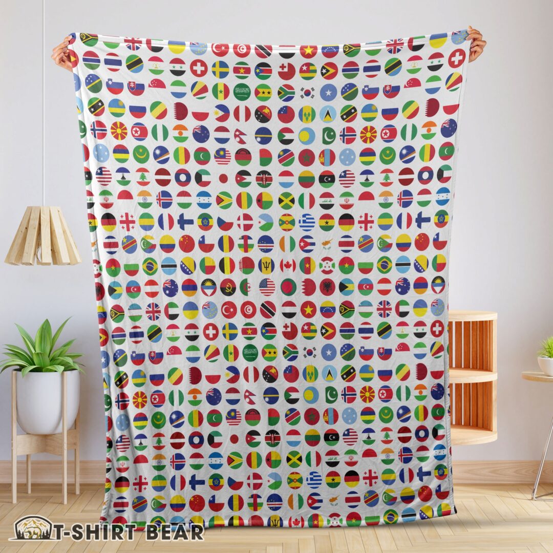 Cute World Flags International Flags Collage Blanket Fleece Blanket