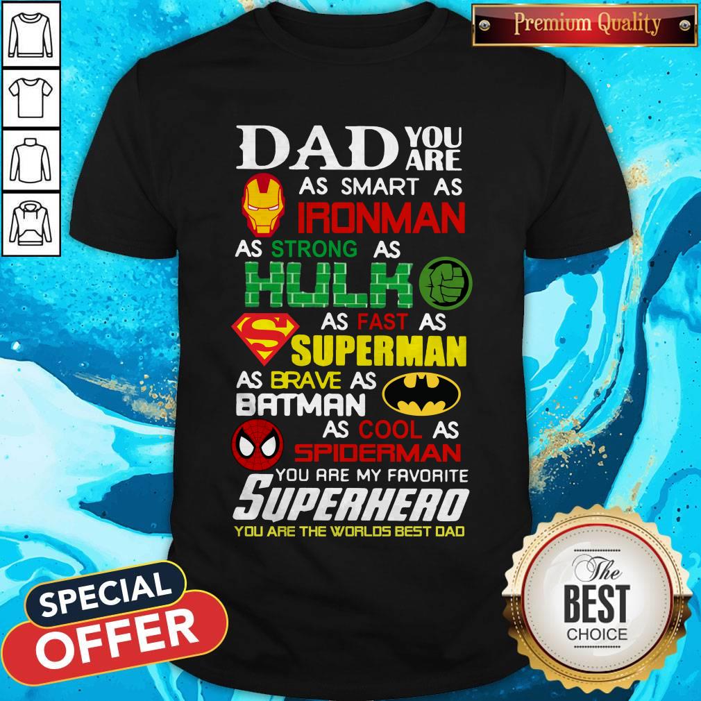 Dad You Are As Smart As Iron Man As Strong As Hulk As Fast As Superman You Are My Favorite Superhero You Are The Worlds Best Dad Shirt