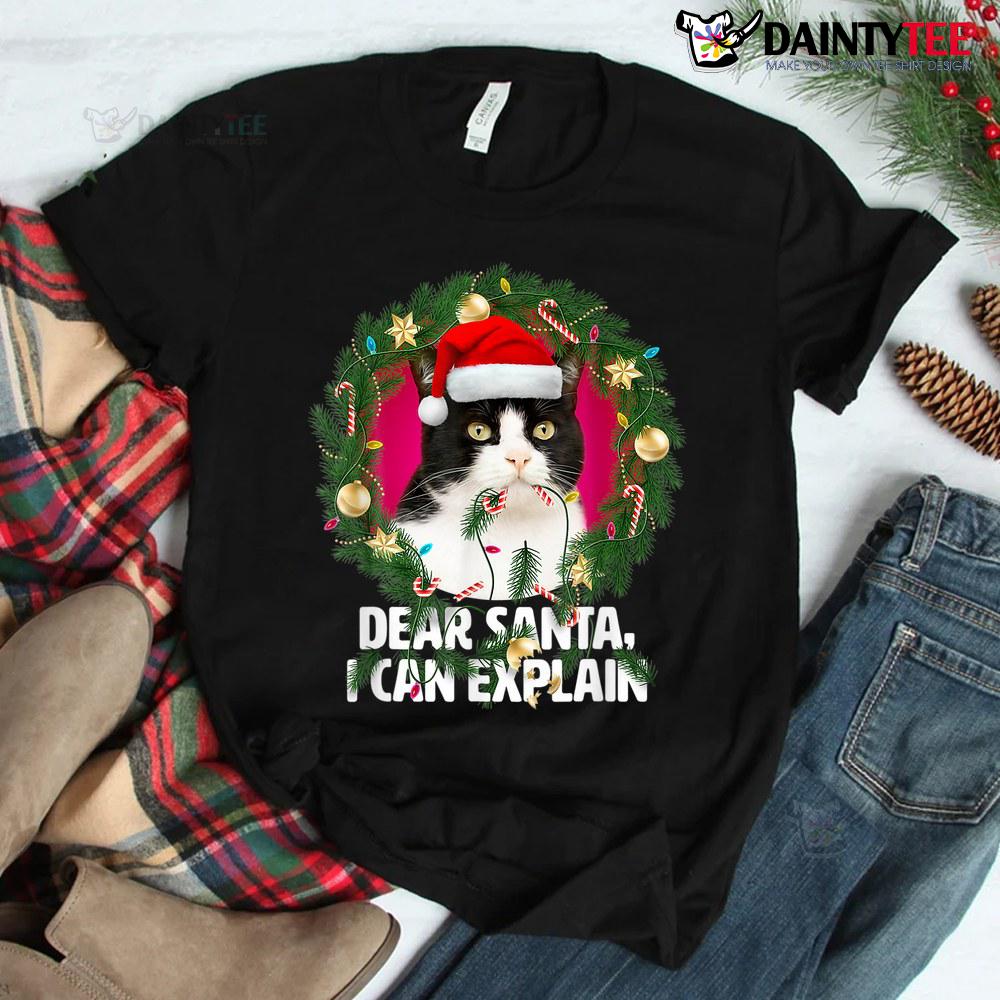 Dear Santa Cute Black White Cat Naughty Christmas Shirt