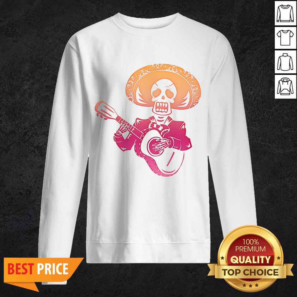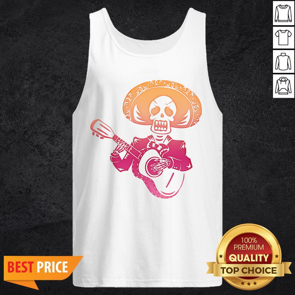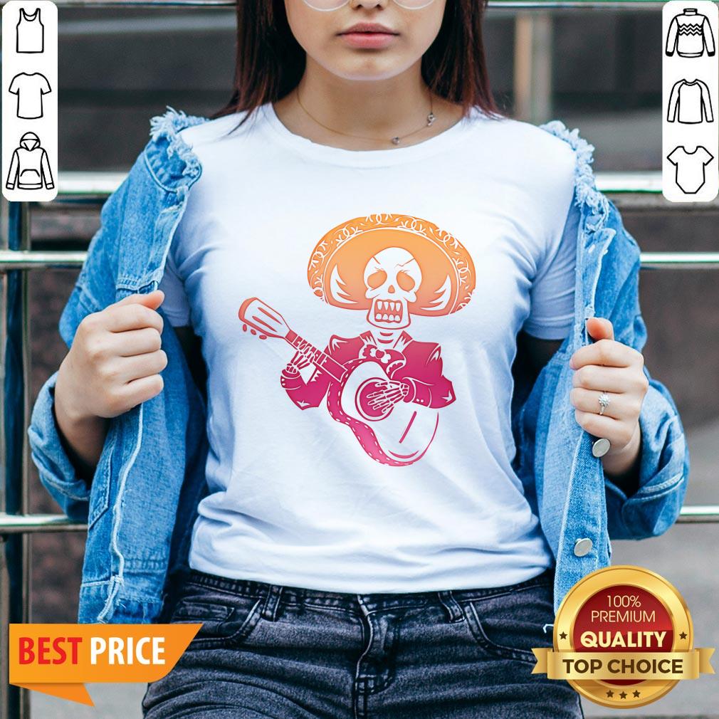 Dia De Los Muertos Mexican Skull Playing Guitar T-Shirt