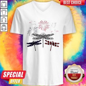 Dragonfly Firework American Flag Independence Day Shirt