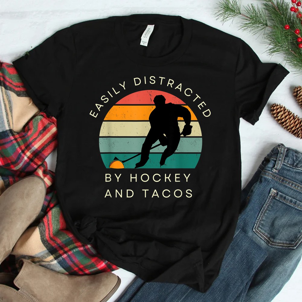 Easily Distracted By Hockey And Tacos Shirt
